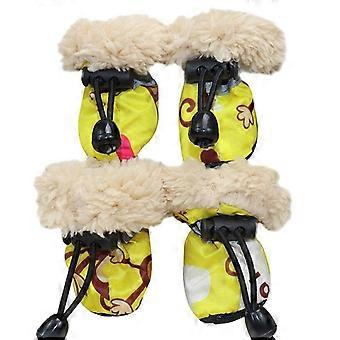 4 قطع الشتاء الكلب جرو أحذية الحيوانات الأليفة الكرتون المطبوعة لينة نعل الأحذية أحذية الحيوانات الأليفة الكلب للماء الصوف أحذية الحيوانات الأليفة باو مستلزمات العناية &