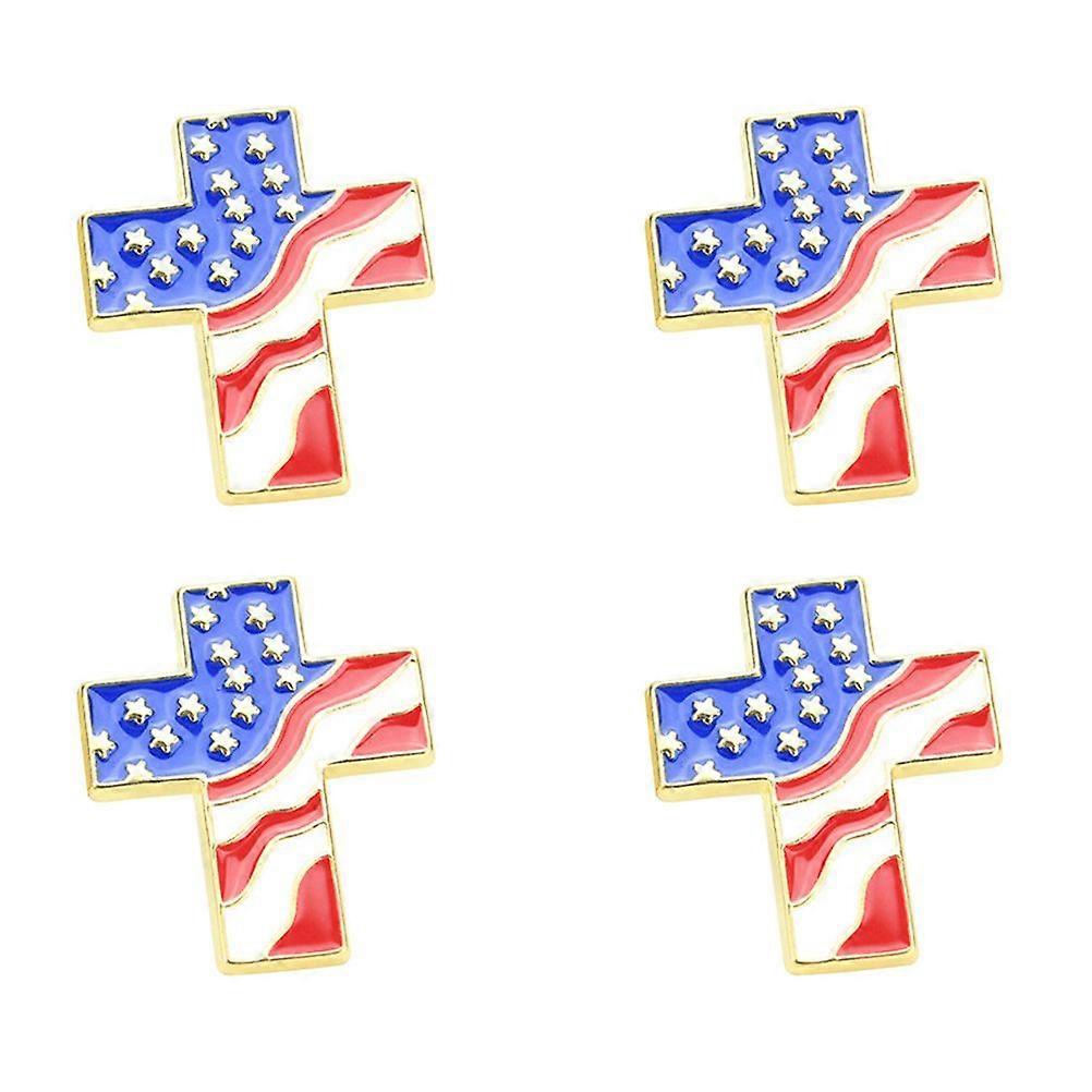 4pcs American Flag Cross Shaped Lapel Pin Metal Badge Zinc Alloy Costume Accessories