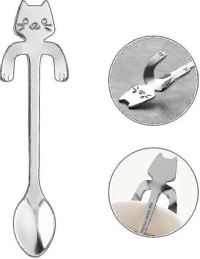 4 Pcs Stainless Steel Coffee Spoon Mini Cat Kitty,hanging Cup Spoon