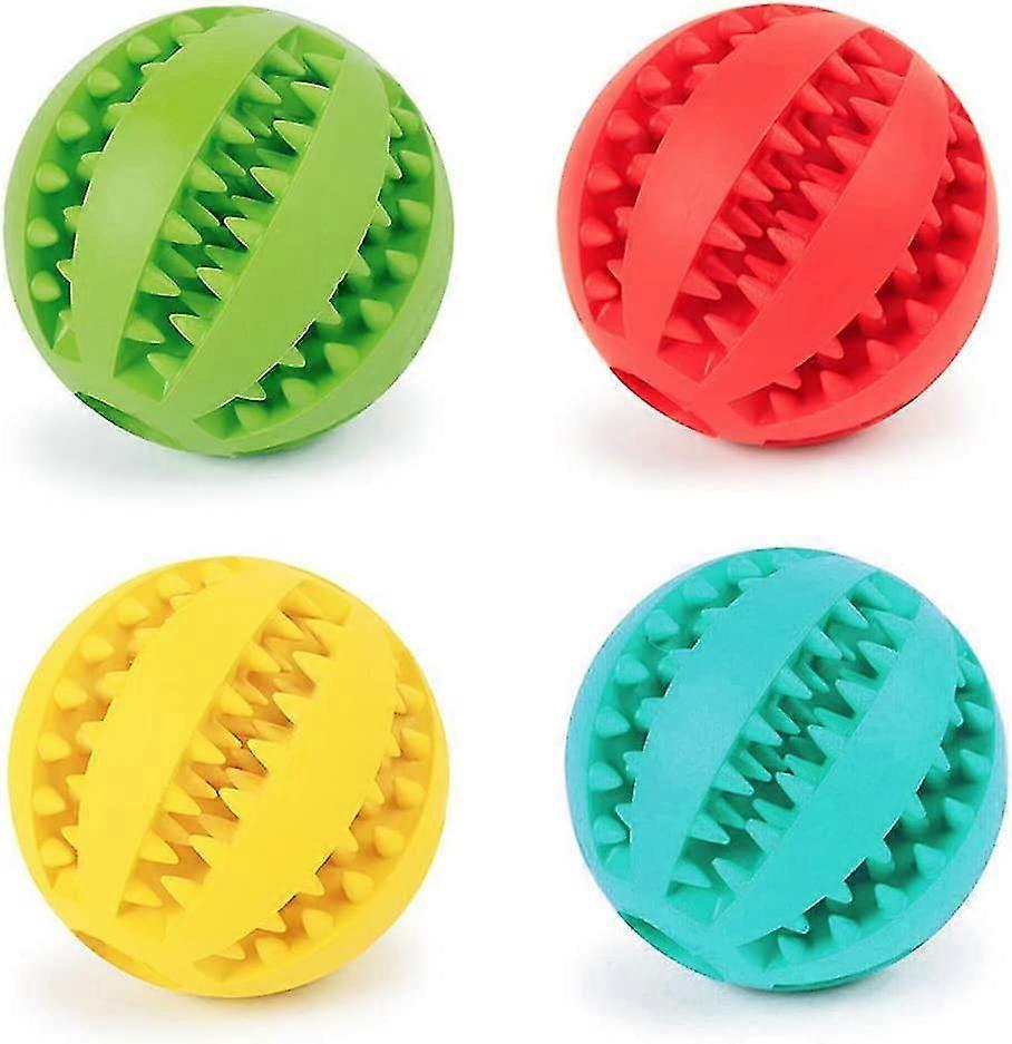 4pcs Dog Rubber Ball Chew Toy Bite Resistant Treat Dispensing Tooth Cleaning Puppy Toy For Small Medium Large Dog (7cm)