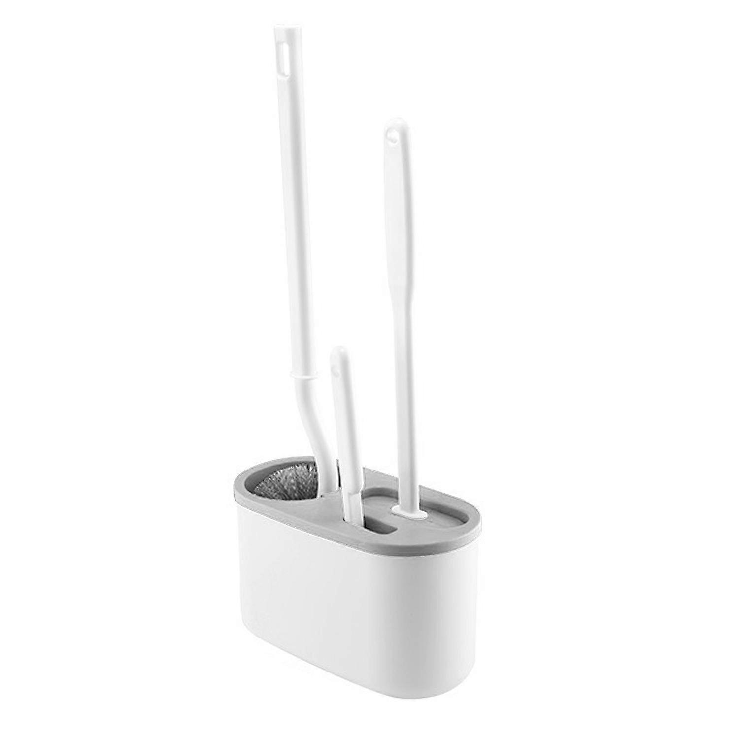 Feature: 1. PRODUCT LIST: The product includes a toilet brush holder, a toilet brush, a silicone brush and a crevice brush. 2. TOILET BRUSH: Toilet brush with 360 degree spherical brush head, easy to deal with all four corners, clean thoroughly. 3. SILICONE BRUSH: Silicone brush with a flat head design, flexible brush head, fit the inner wall of the toilet, deep cleaning. 4. CREVICE BRUSH: Crevice brush has soft and fine bristles, which can penetrate into every crevice and clean the edge of the toilet deeply. 5. WALL MOUNTED: Toilet brush set is wall mounted for space saving, no punch design. Bottom ventilation hole design, quickly dissipate the odor. Specification: Item Type: Toilet Brush and Holder Material: Plastic Gross Weight: 350g/12.3oz. Package List: 1 x Toilet Brush Holder3 x Toilet Brush