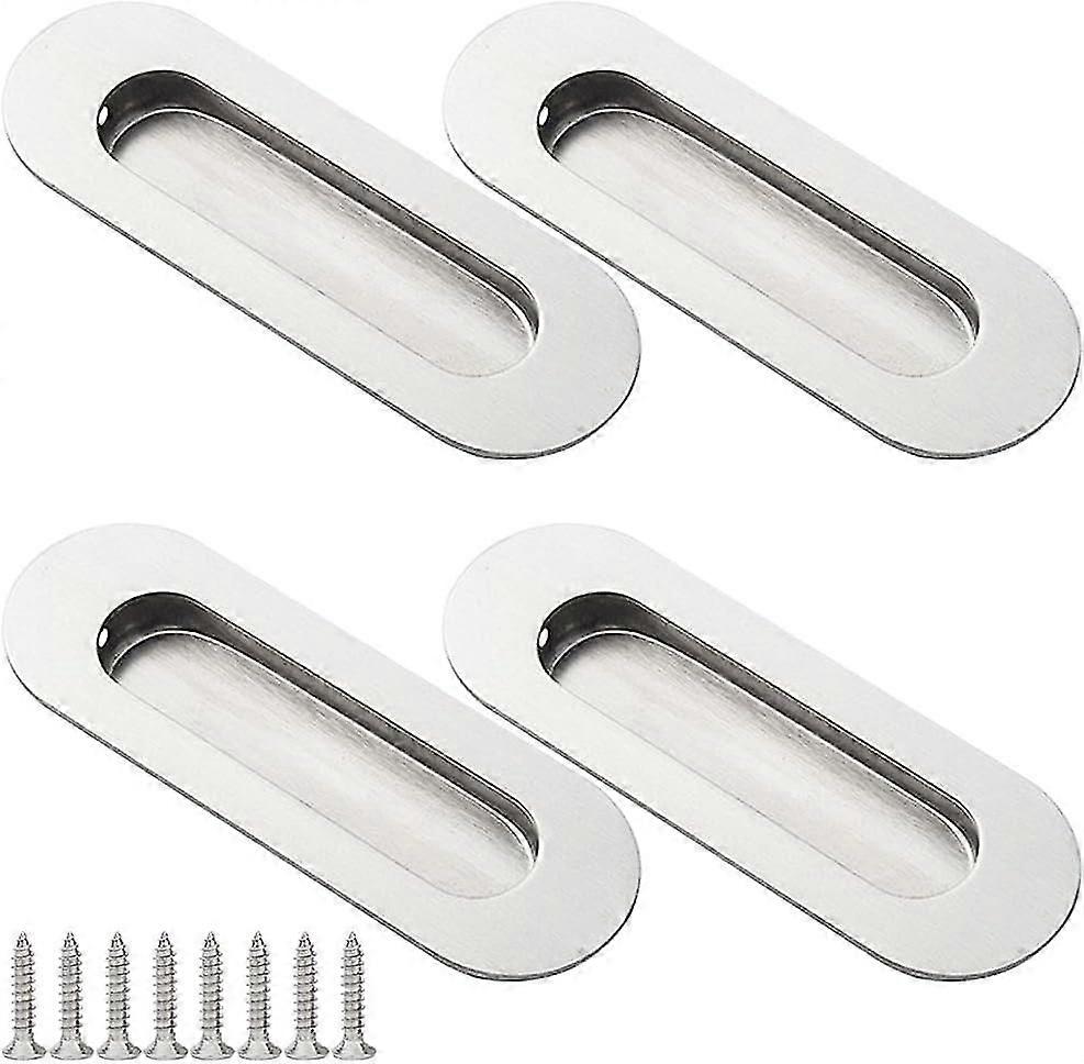 4 Pieces Sliding Door Handles Oval Recessed Handle Shell Handle Stainless Steel Flush Door Handle with Screws for Cabinets Sliding Doors Silver