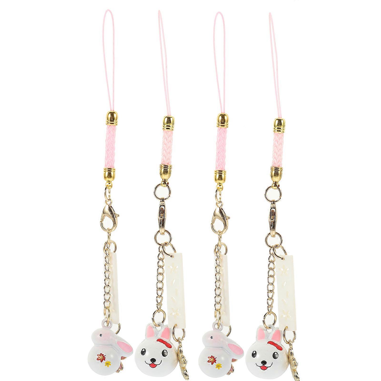 4 Pieces Rabbit Design Bell Flower Amulet Pendant Phone Lanyard Decor Accessories in Assorted Color