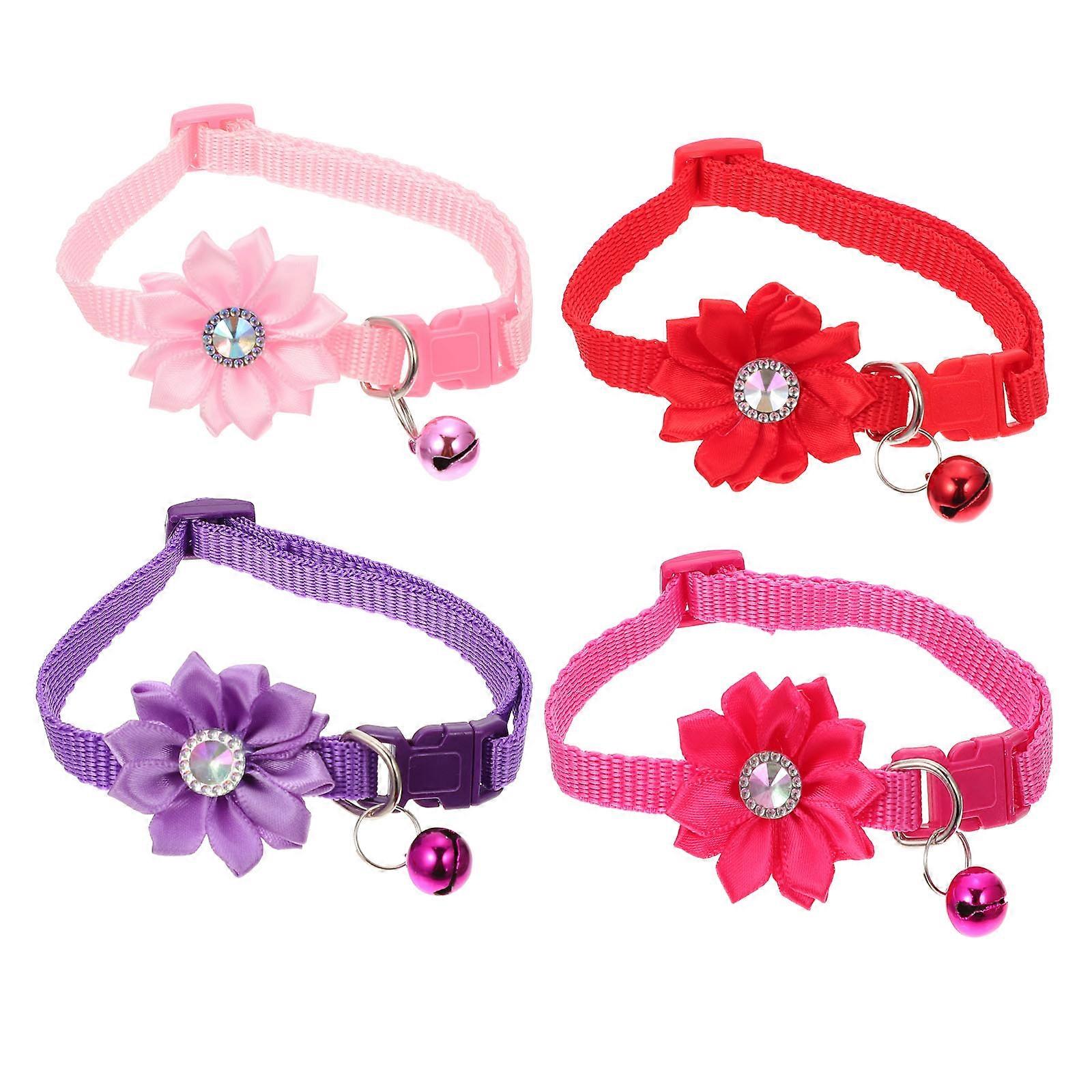 4pcs Adjustable Pet Collars with Bell Charming Floral Design Comfortable Lightweight Neck Accessories for Parties