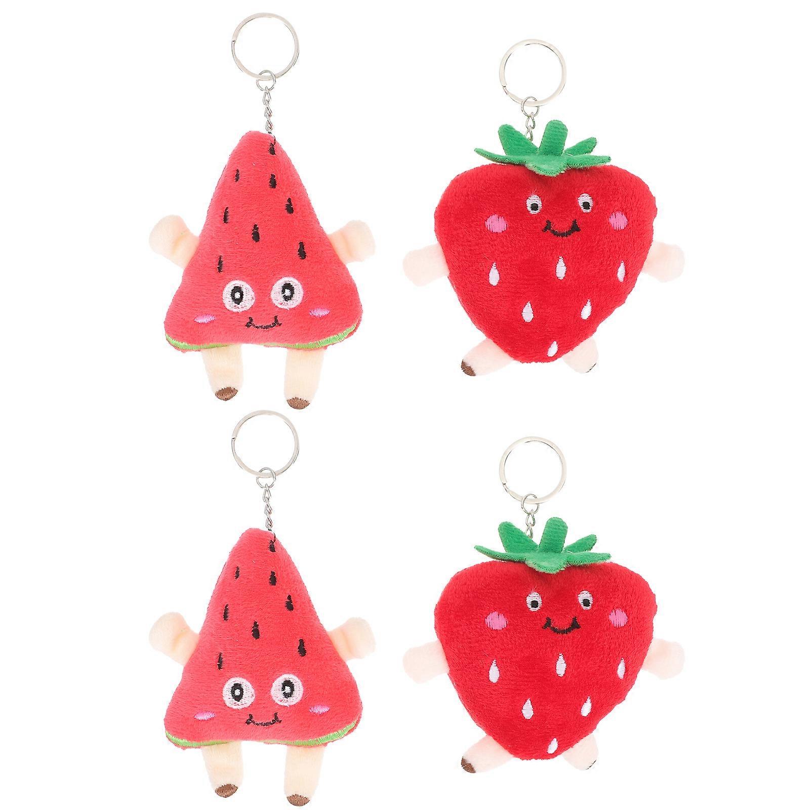 4PCS Plush Fruit Keychain Set Soft Cartoon Key Ring Decor for Party Gifts, Lightweight Cute Bag Pendant with Strawberry & Watermelon Design