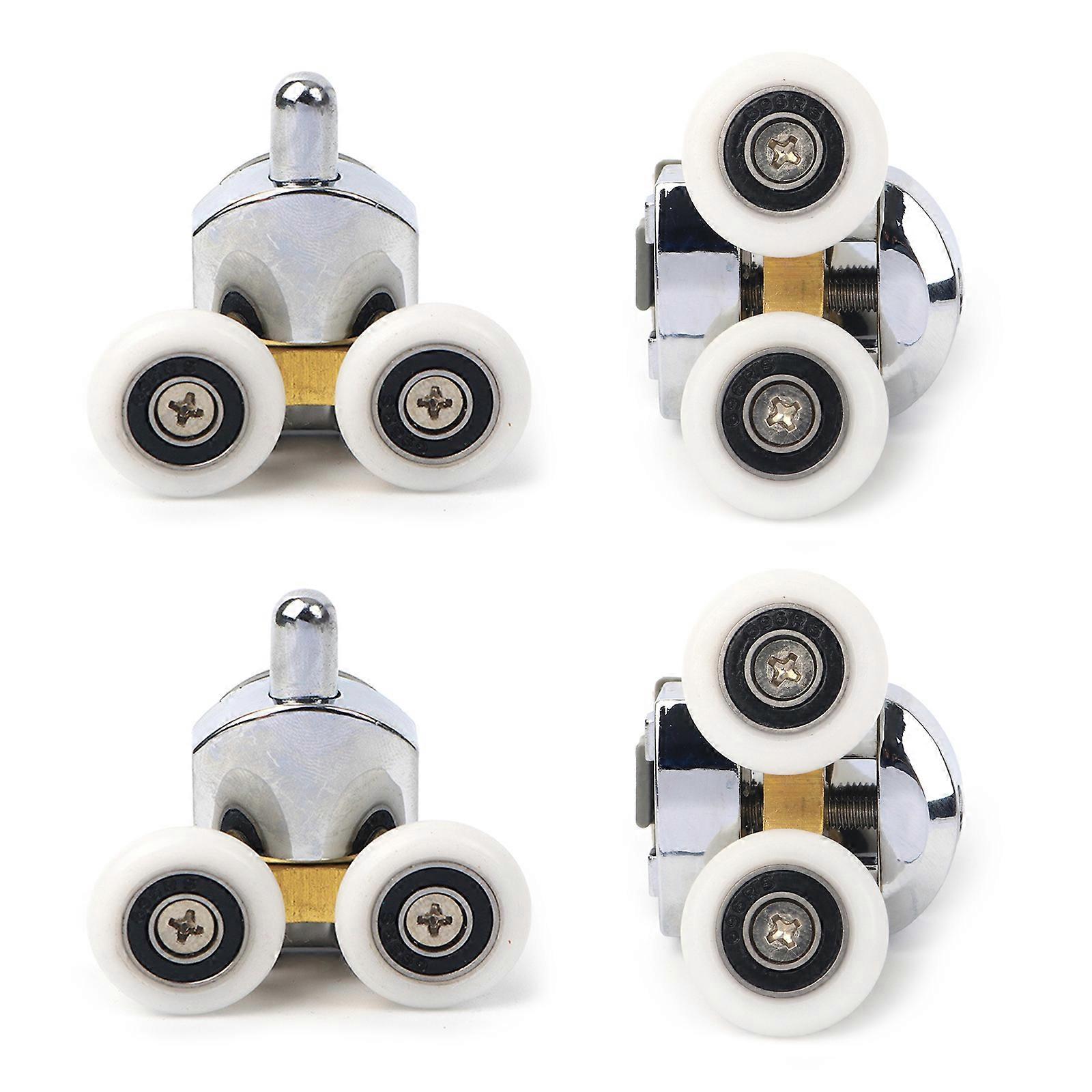4pcs Shower Door Rollers Double Wheel Sliding Curved Cabinet Shower Door Rollers Bear Wheel Replacement Adjustable 25mm
