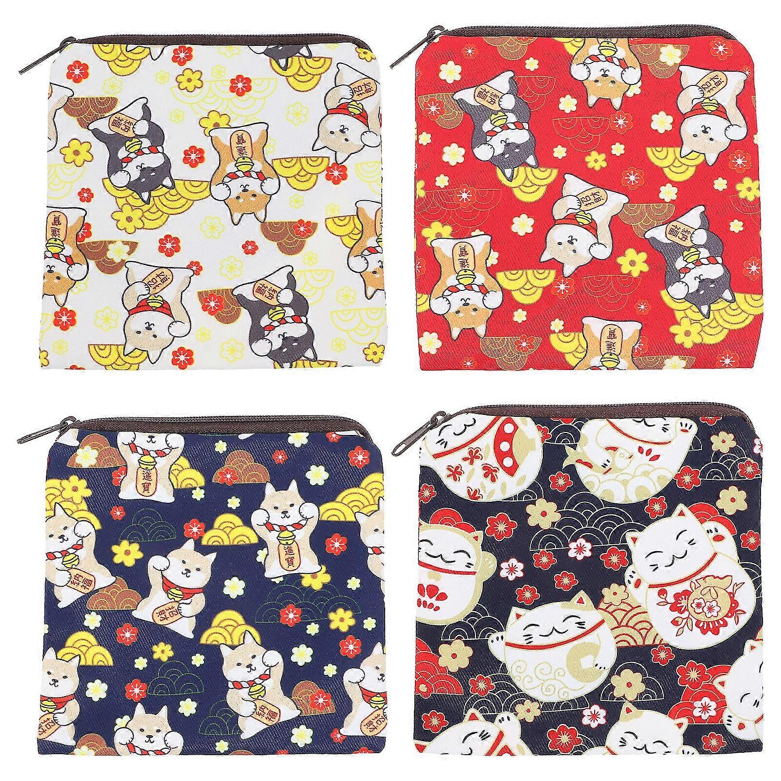 4 Pcs Lovely Cartoon Sanitary Napkin Bags Portable Menstrual Pad Pouches (assorted Color)