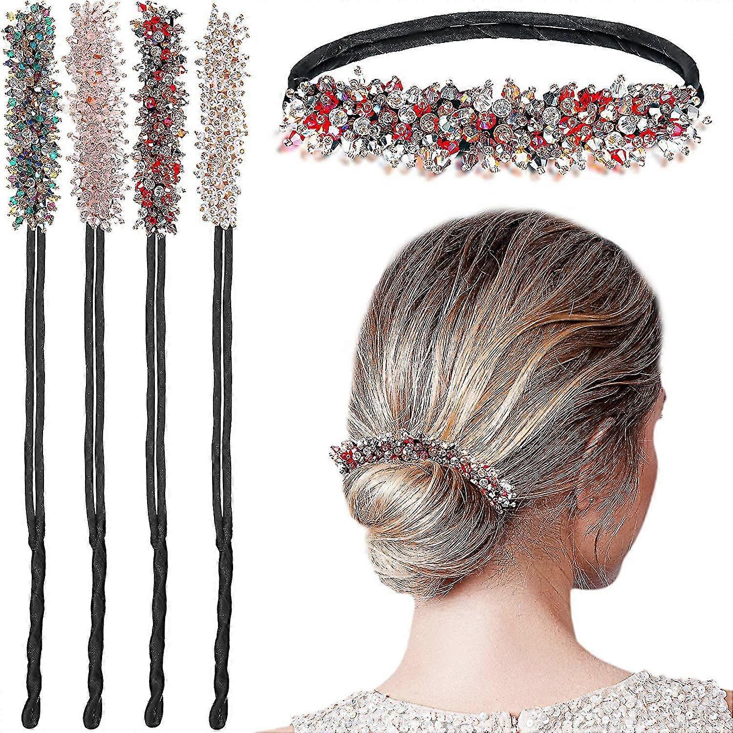 4 Pieces Rhinestone Hair Bun Maker Magic Hair Styling Deft Bun Elegant Easy Bun Maker Compatible With Hair Multicolored Convenient Hairstyle Tool Diy