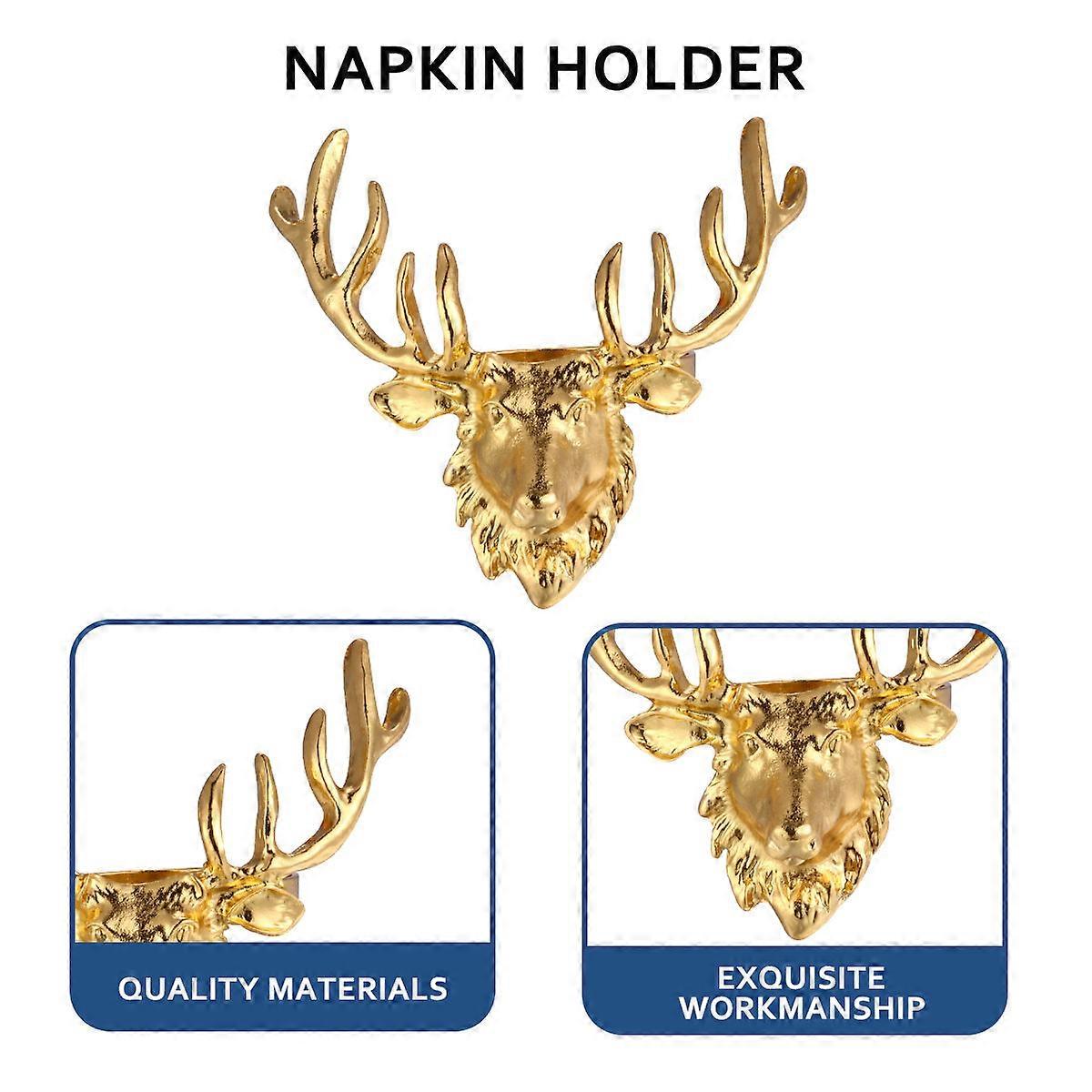 4PCS Christmas Napkin Rings, Alloy Deer Head Design, Festive Party Table Decoration for Holiday Dinners and Gatherings