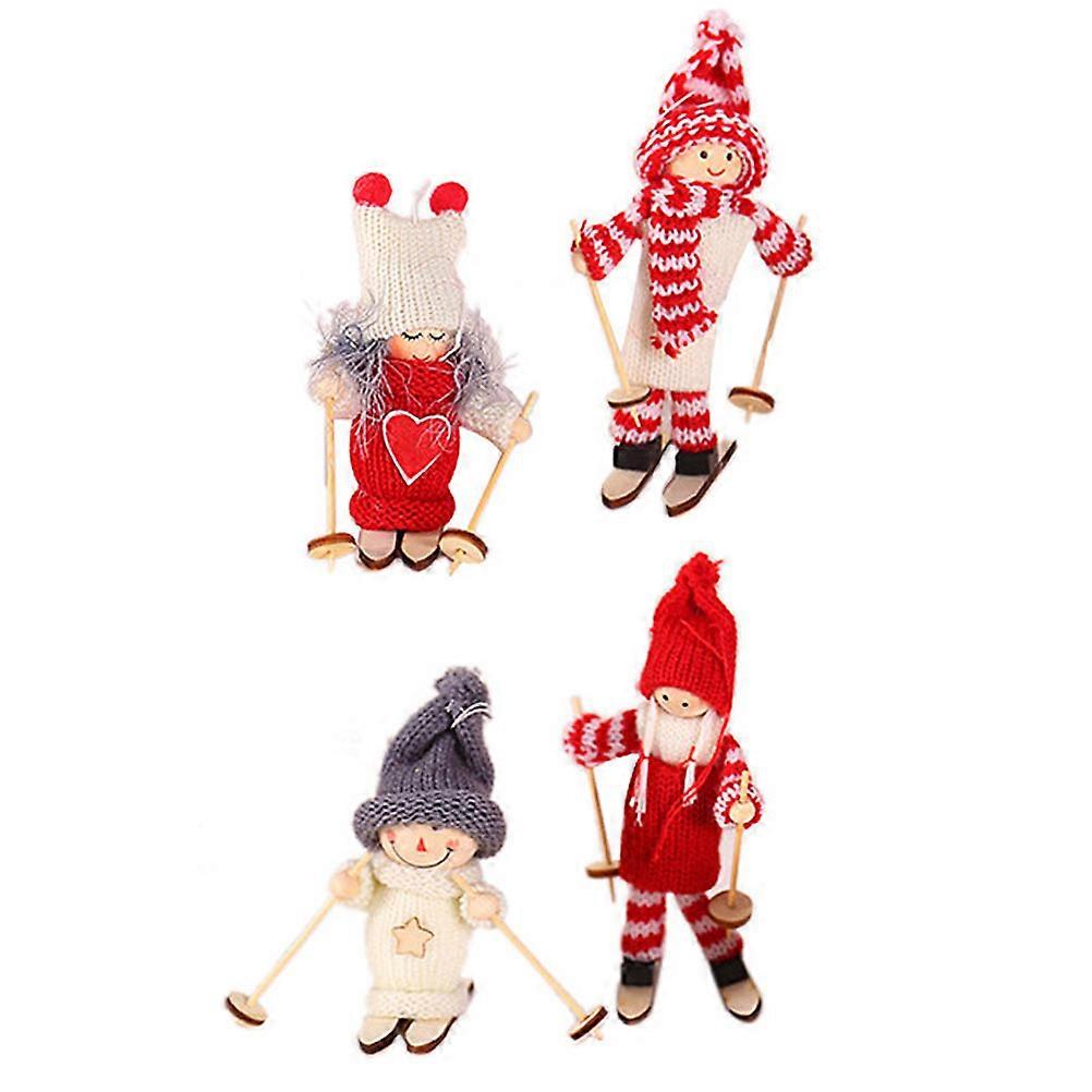 4PCS Wooden Ski Doll Christmas Decorations for Home Holiday Tabletop Ornaments Festive Desktop Display