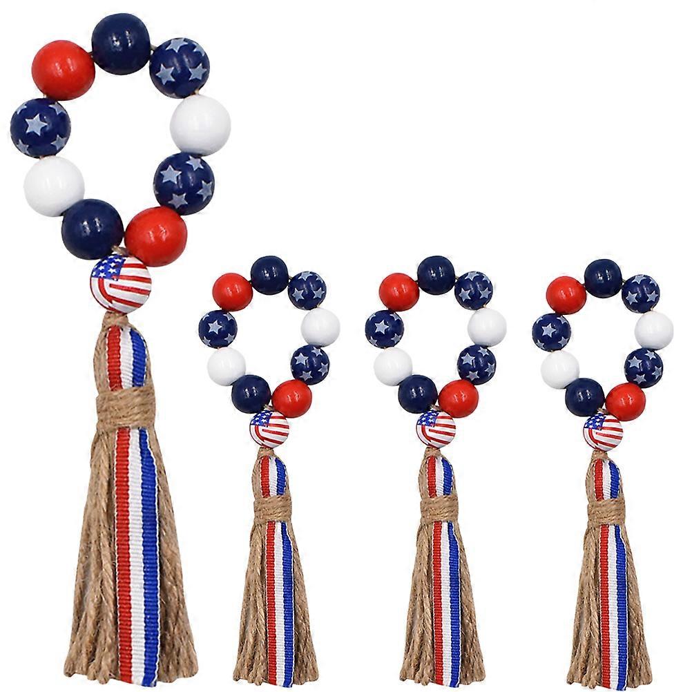 4pcs Wooden Bead Napkin Ring Independence Day Themed Napkin Holder Bead Garland Ring With Tassel