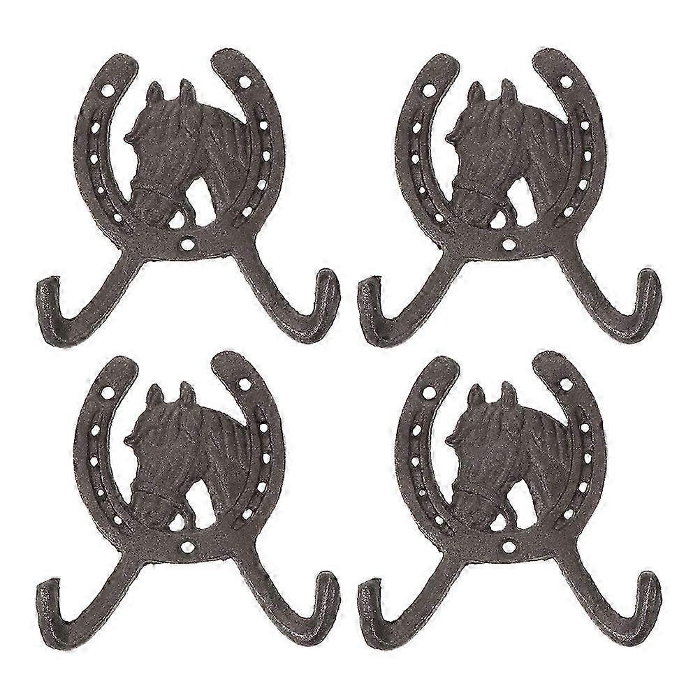4Pcs Retro Horseshoe Wall Hooks, Decorative Grey Hooks 12X12CM
