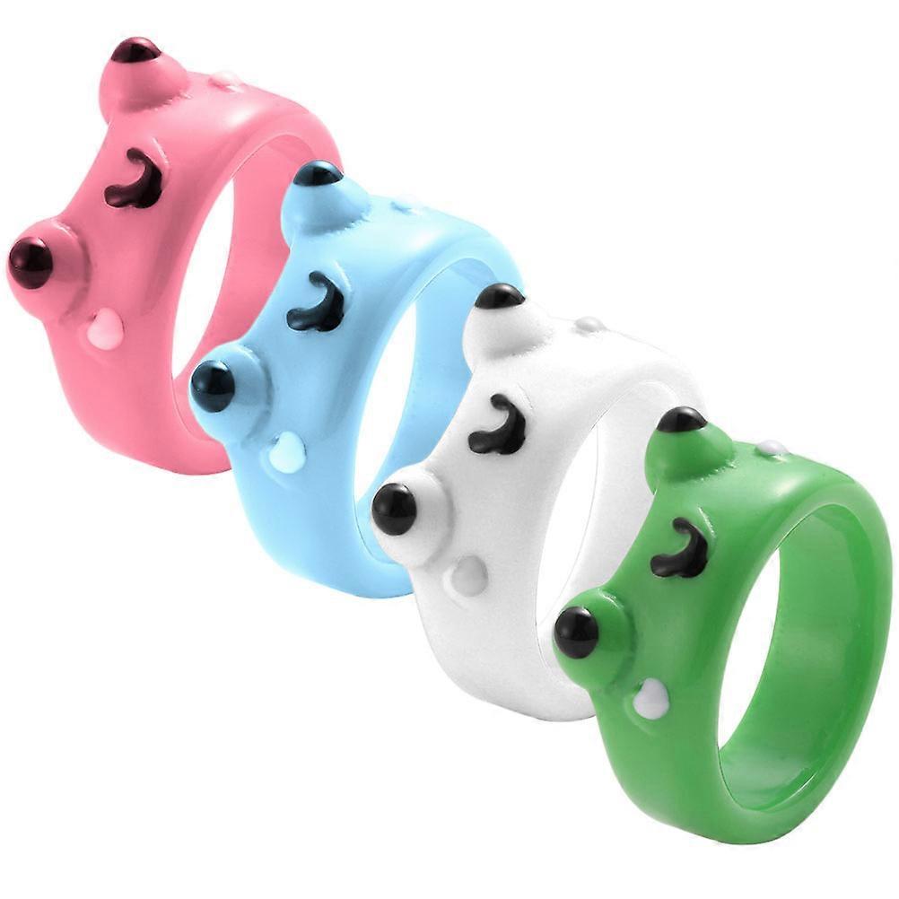 4pcs Lightweight Resin Frog Rings Cartoon Animal Finger Rings for Women Stylish Casual Wear