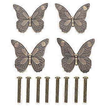 4pcs Vintage Butterflies Cupboard Door Knobs Antique Drawer Pulls Handle Knobs