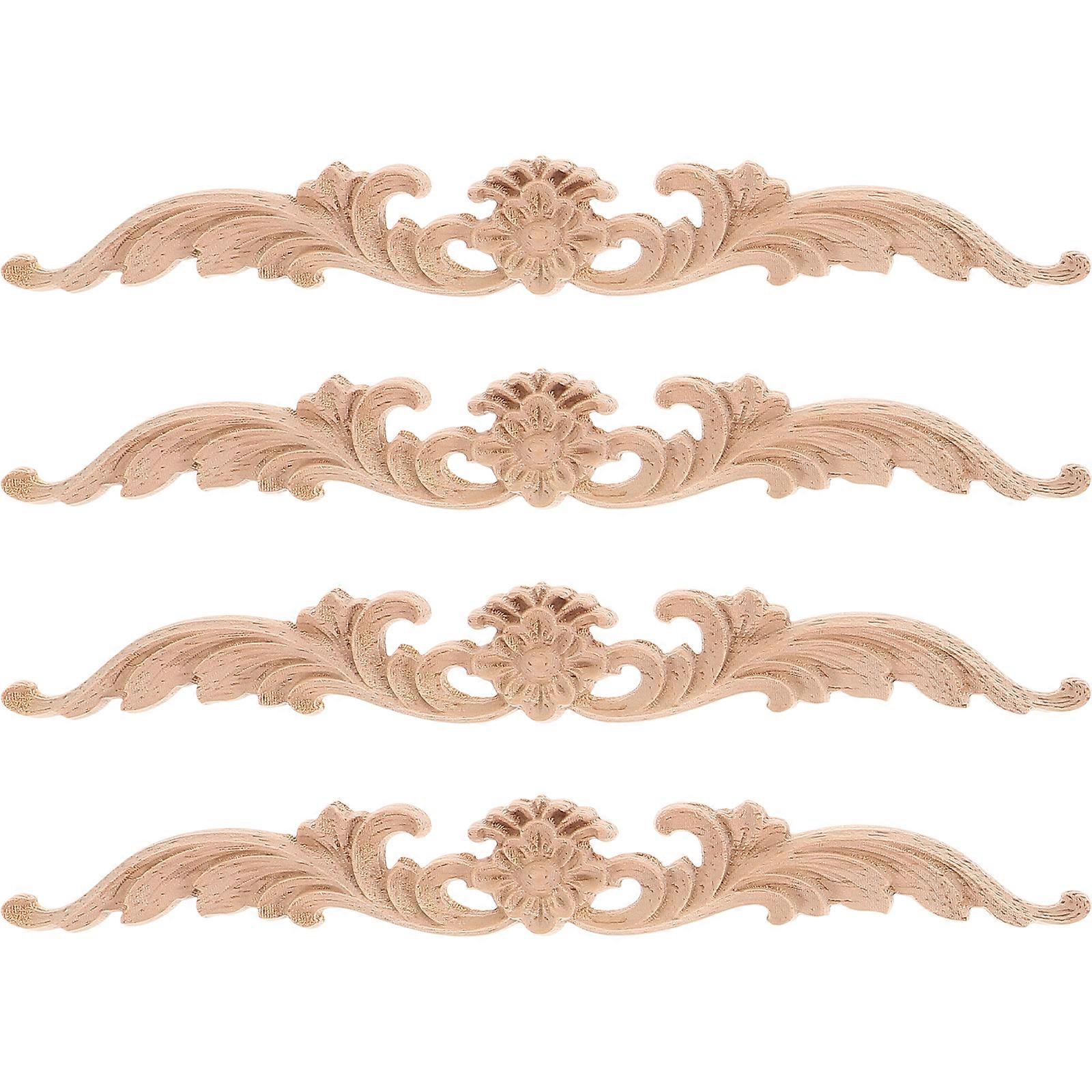 4pcs Exquisite Wood Carving Appliques Onlays Door Cabinet Furniture Carving Decal Wood Appliques