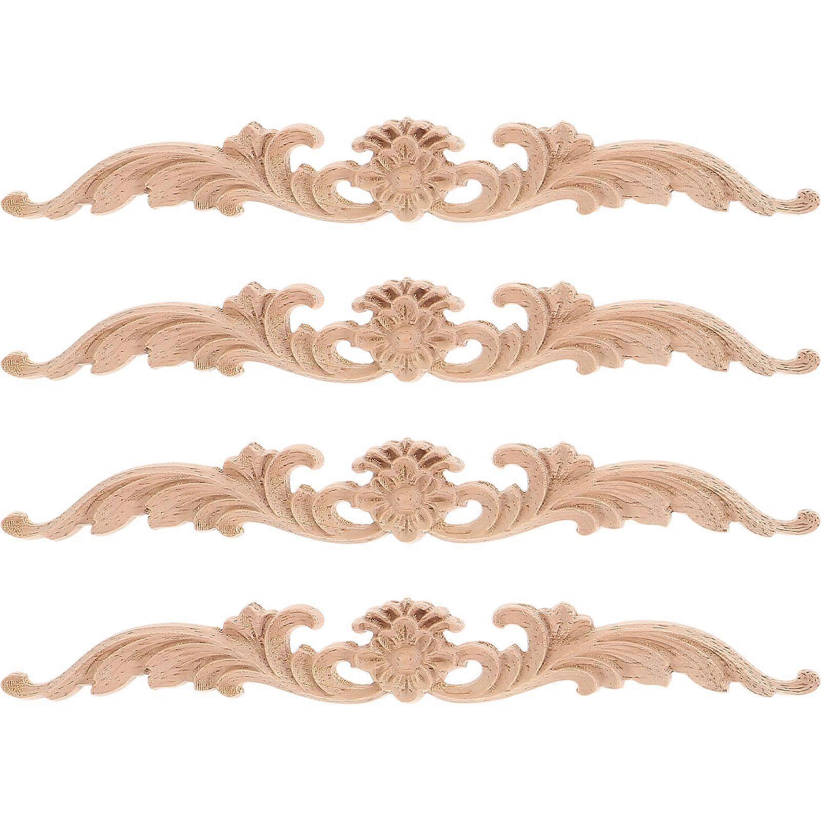 4pcs Exquisite Wood Carving Appliques Onlays Door Cabinet Furniture Carving Decal Wood Appliques