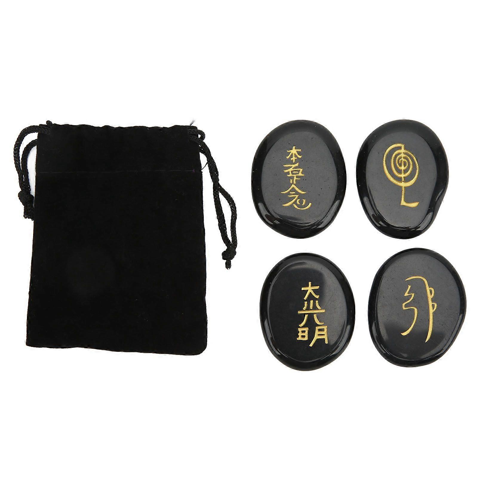 4Pcs Reiki Symbols Stones Smoother Surfaces Engraved Reiki Stones for Home Decoration Meditation Ornament Gift Obsidian