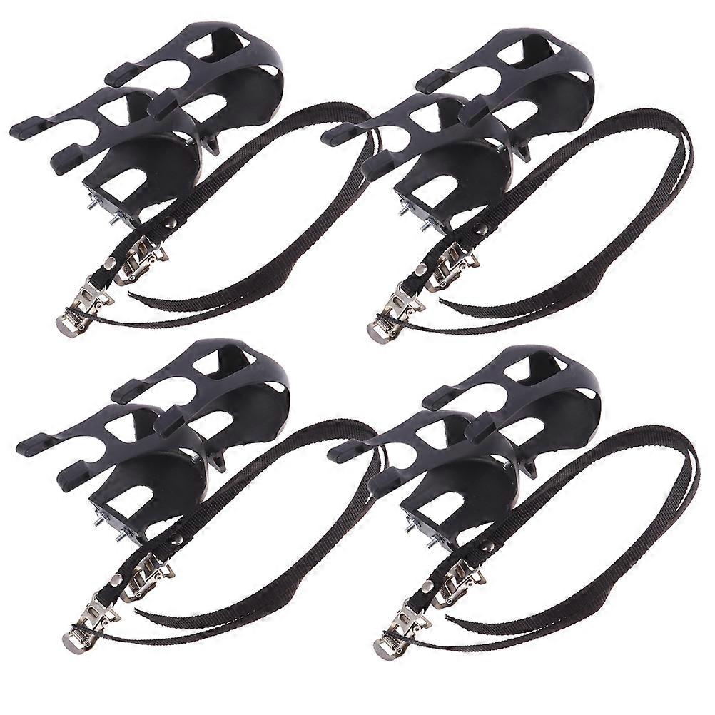 4pcs Slip Mountain Bike Toe Clips with Fixed Straps Durable Plastic Pedal Accessories for Safe and Comfortable Cycling Black