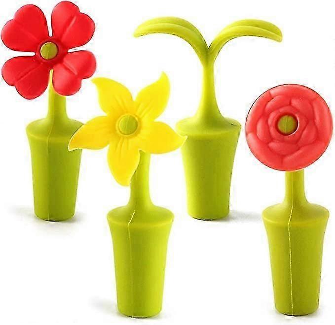 4pcs Flower Wine Bottle Stoppers Reusable Silicone Stoppers Bar Tool for Wine and Drinks Bottles