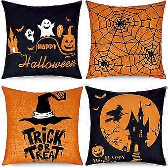 4 Pieces Halloween Decorations Linen Pillow covers Halloween Decoration Orange and Black Decor 18 x 18 Inche