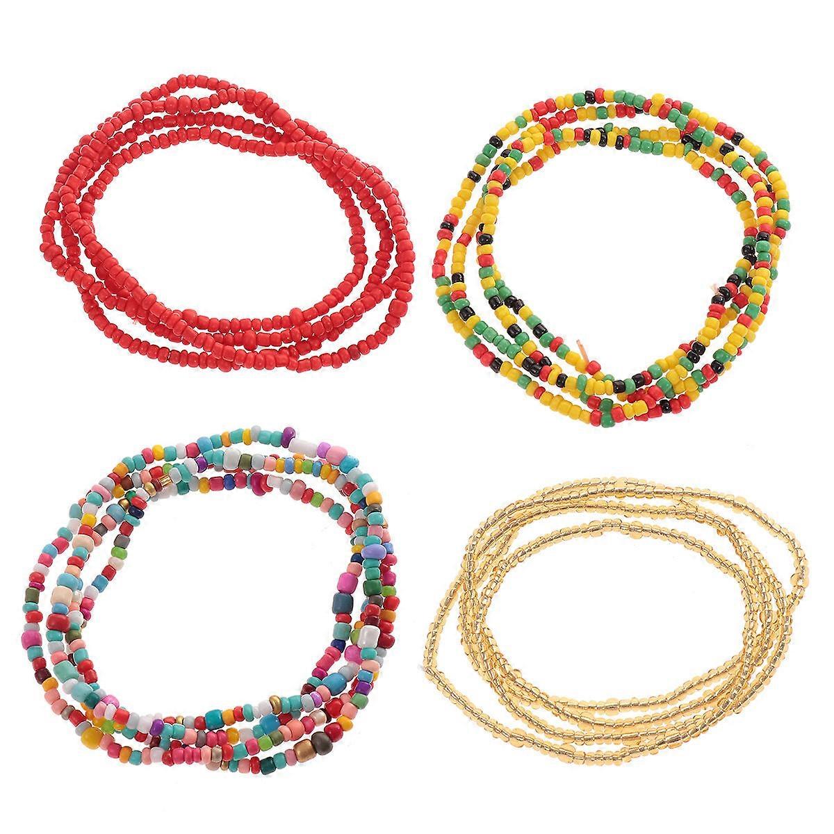 4pcs Stylish Beach Waist Chain for Women – Handmade Glass Beads Bikini Waist Accessory, Fashionable Summer Swimwear Decoration