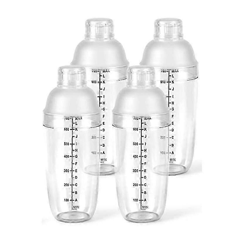 4Pcs Plastic Cocktail Shaker ,700Cc/24 Oz Drink Mixer with Scales for Bar Party Home Use Wine Shake