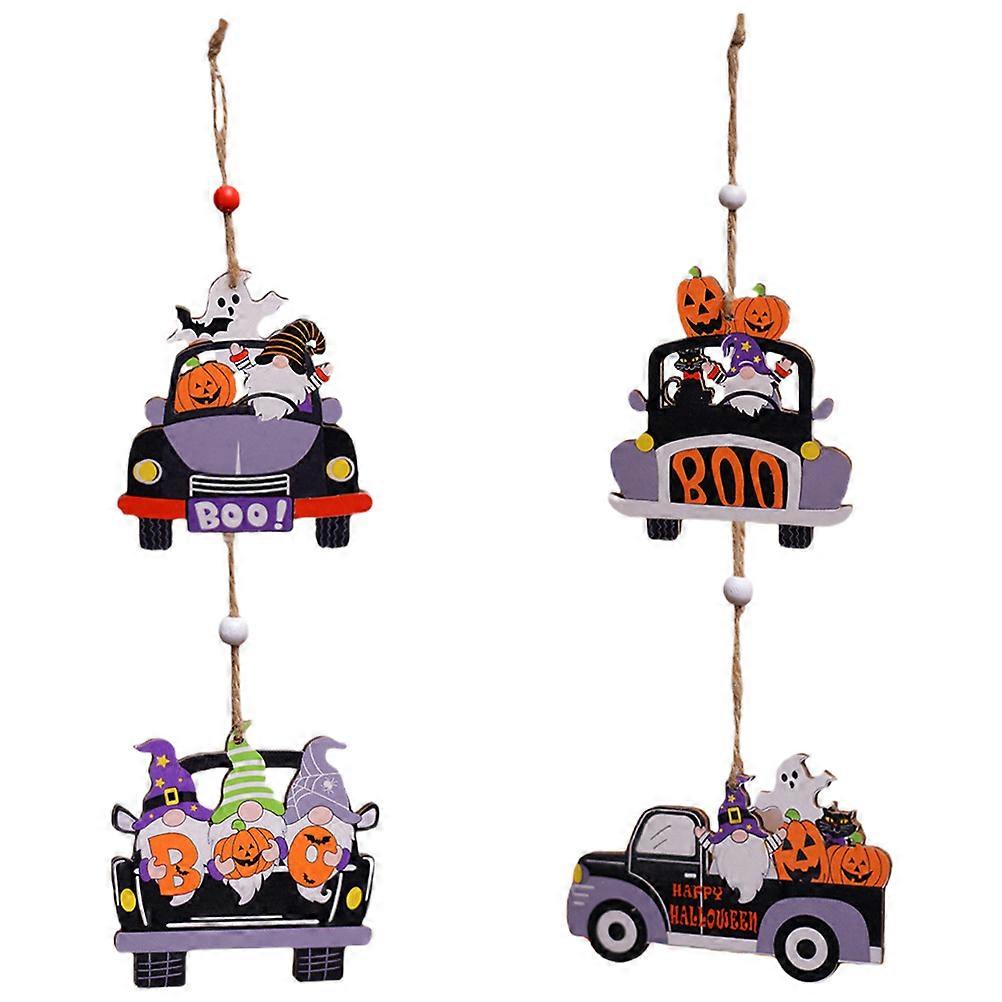 4pcs Halloween Tree Hanging Ornaments Wooden Decorations for Spooky Classic Theme, Ideal for Home & Party Atmosphere