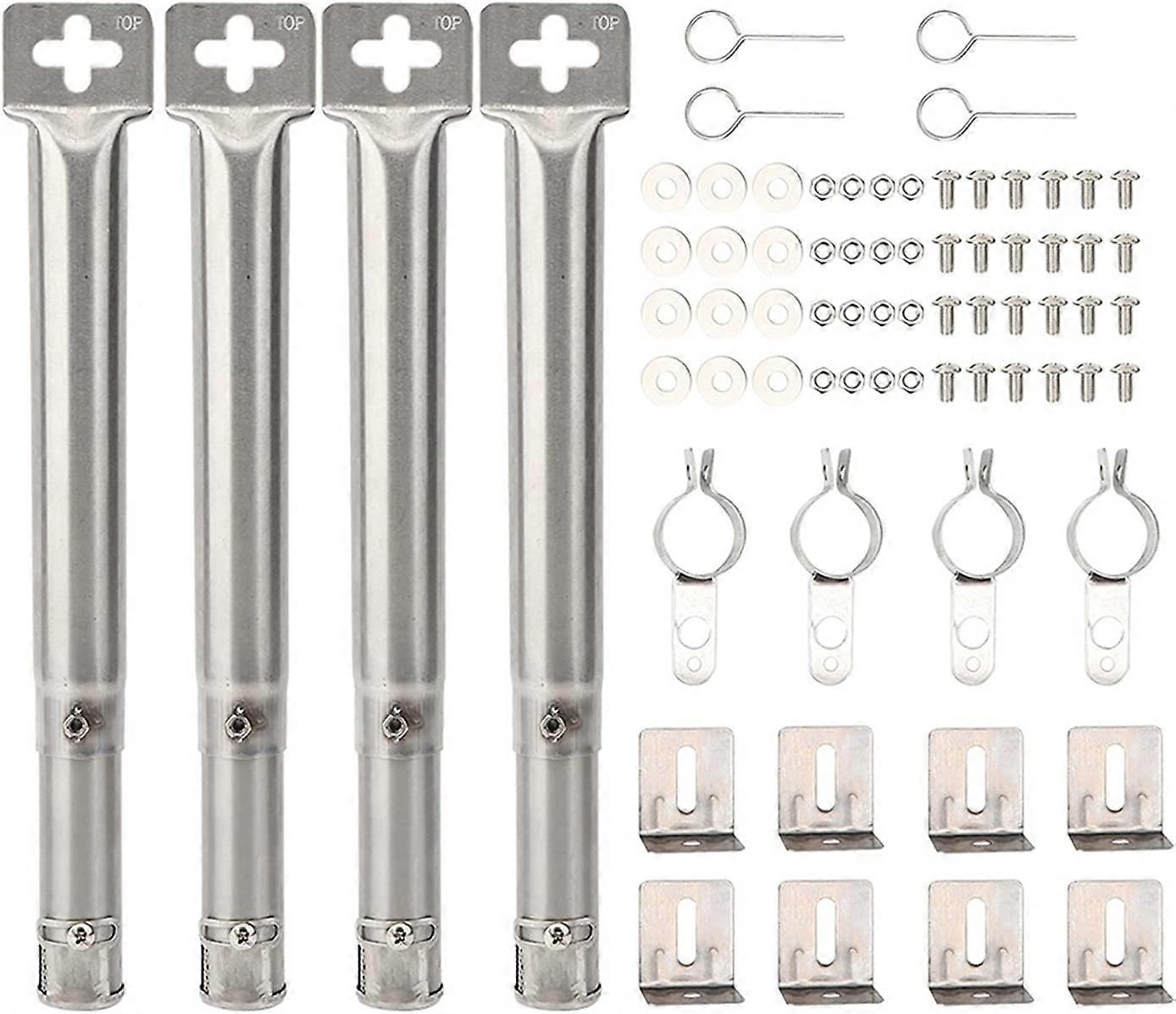 4Pcs Universal Adjustable Stainless Steel BBQ Gas Grill Replacement Straight Pipe Tube Burner Barbecue Accessories (Color : Silver)