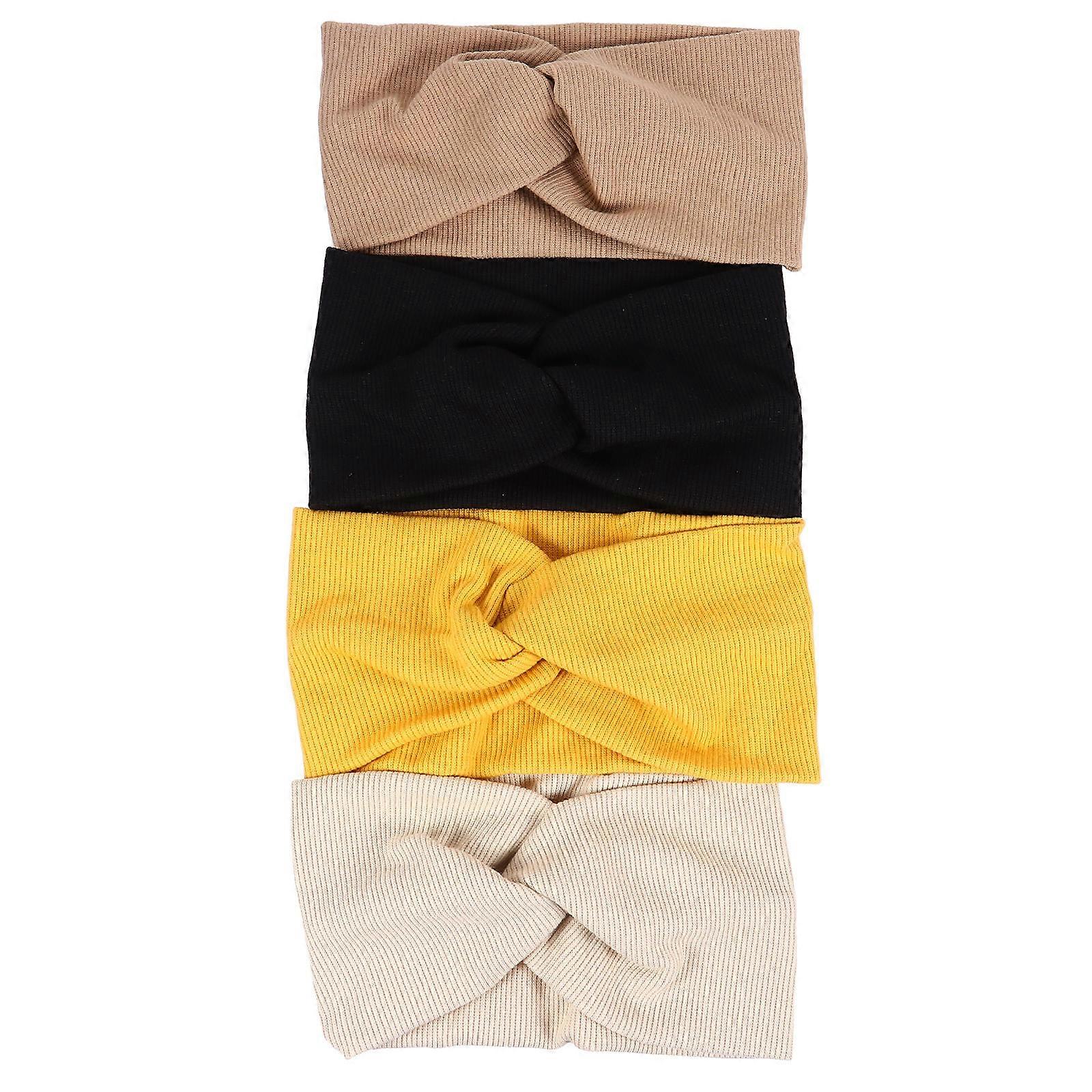 4pcs Wide Brimmed Sports Headbands for Women – Comfortable Elastic Yoga Hair Accessories in Black, Beige, Ginger, Khaki for Running, Cycling, Aerobics