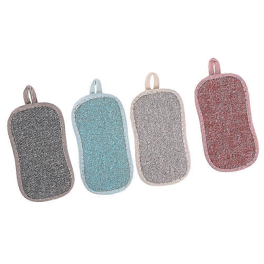 4pcs Double Sided Dishwashing Sponge Kitchen Scouring Pads Cleaning Scrubbers (Random Color)