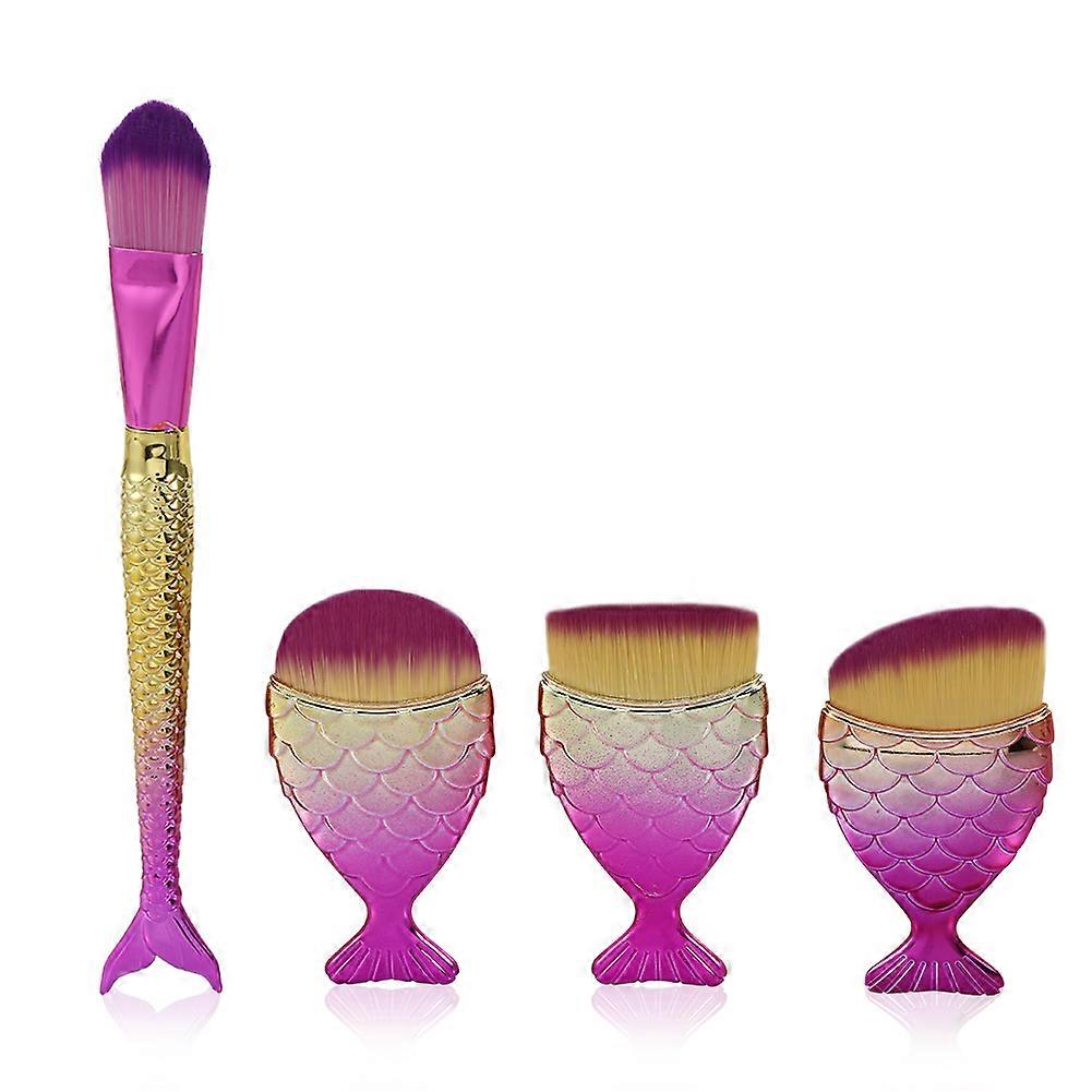 4Pcs Cosmetic Brushes Powder Blush Foundation Fishtail Makeup Brushes Beauty Tools