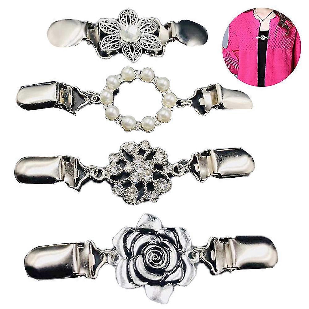 4 Pieces Vinta Sweater Shawl Clips Retro Igan Collar Clips Shirt Brooch Clips For Women Girls Wearing, 4 S