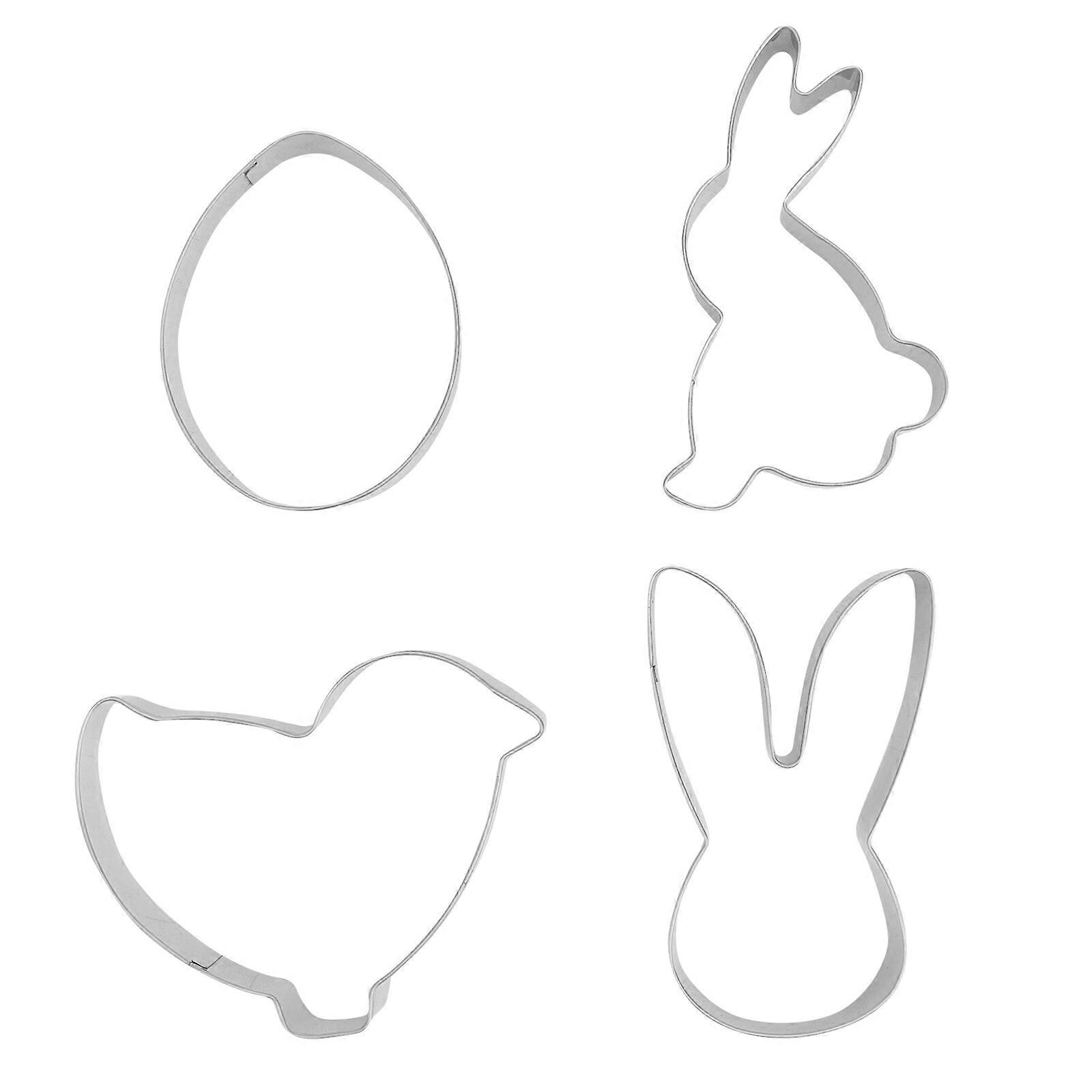 4 Pcs Easter Cookie Cutters Set Non-stick Stainless Steel Cake Molds Assorted Shape DIY Cupcake Biscuit Moulds for Home Dessert House- Rabbit+Rabbit H