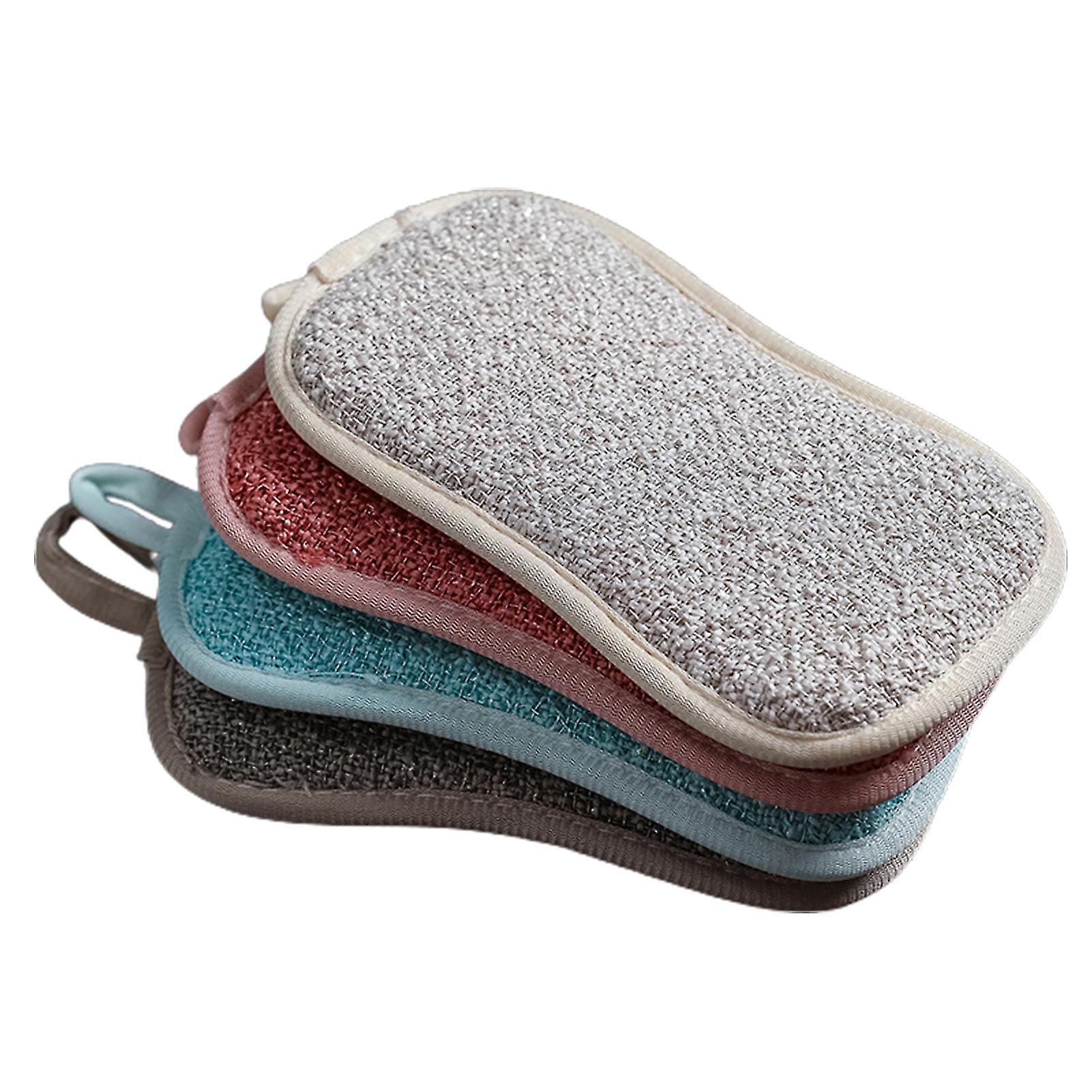 4pcs/set Scouring Pad Double-sided Super Absorbent Convenient Reusable Cleaning Scrub Sponges For Dishes