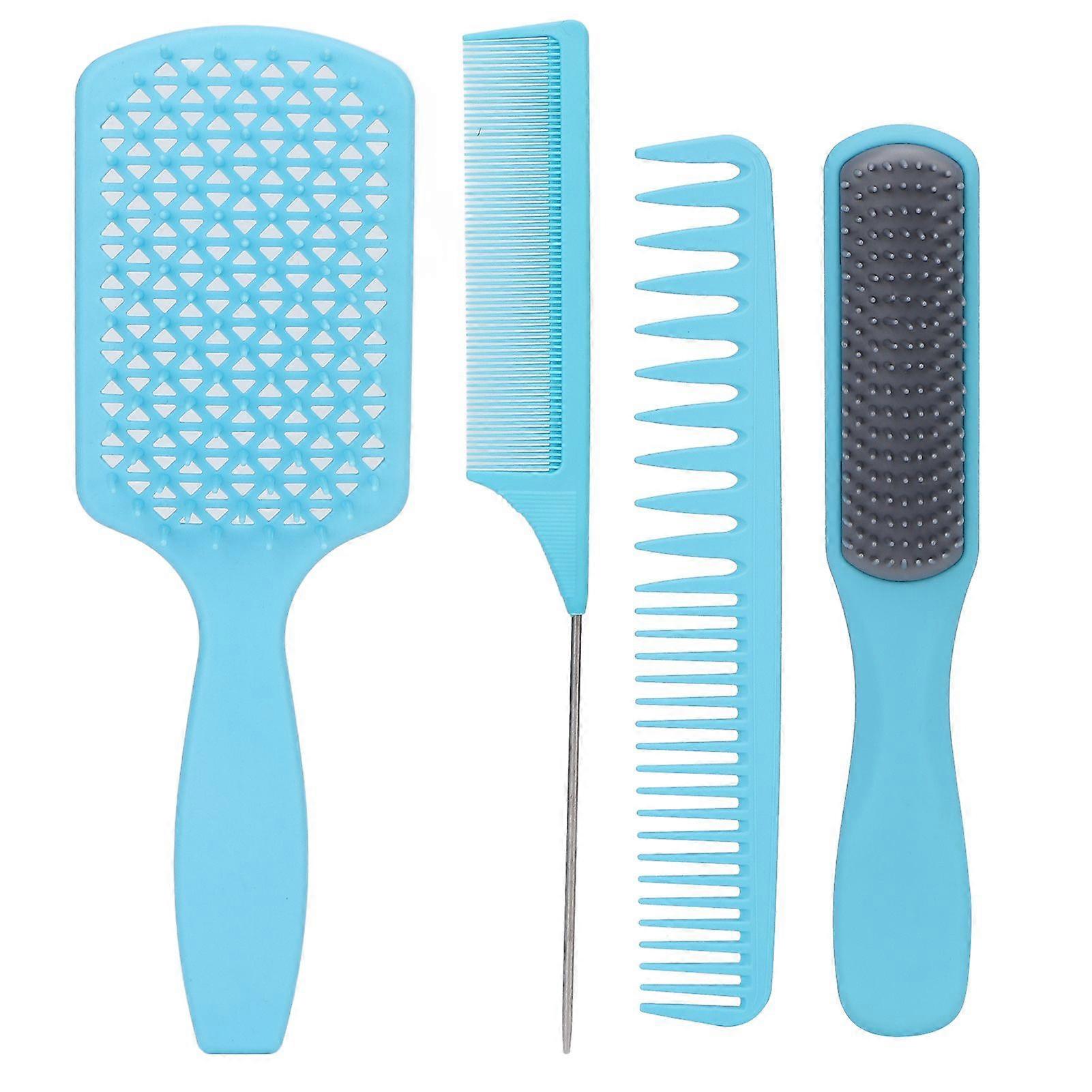 4pcs Hair Brush Set Hollow Comb Tail Comb Fine Wide Teeth Scalp Massage Hair Styling Comb SetBlue Box Packed