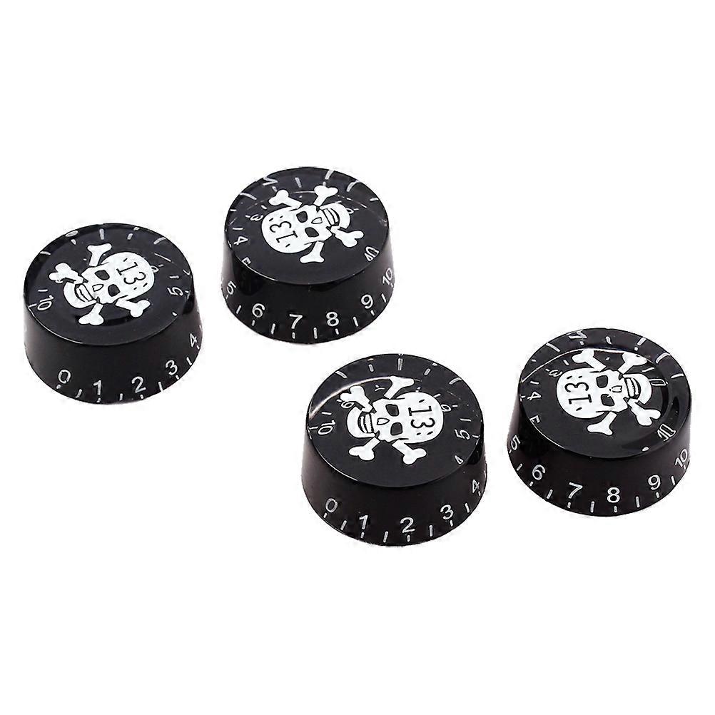 4 PCS/ Set Guitar Knobs Volume Tone Control Knobs Skull Pattern Rotary Knobs for LP Electric Guitar Parts Replacement (Black/ White Pattern)