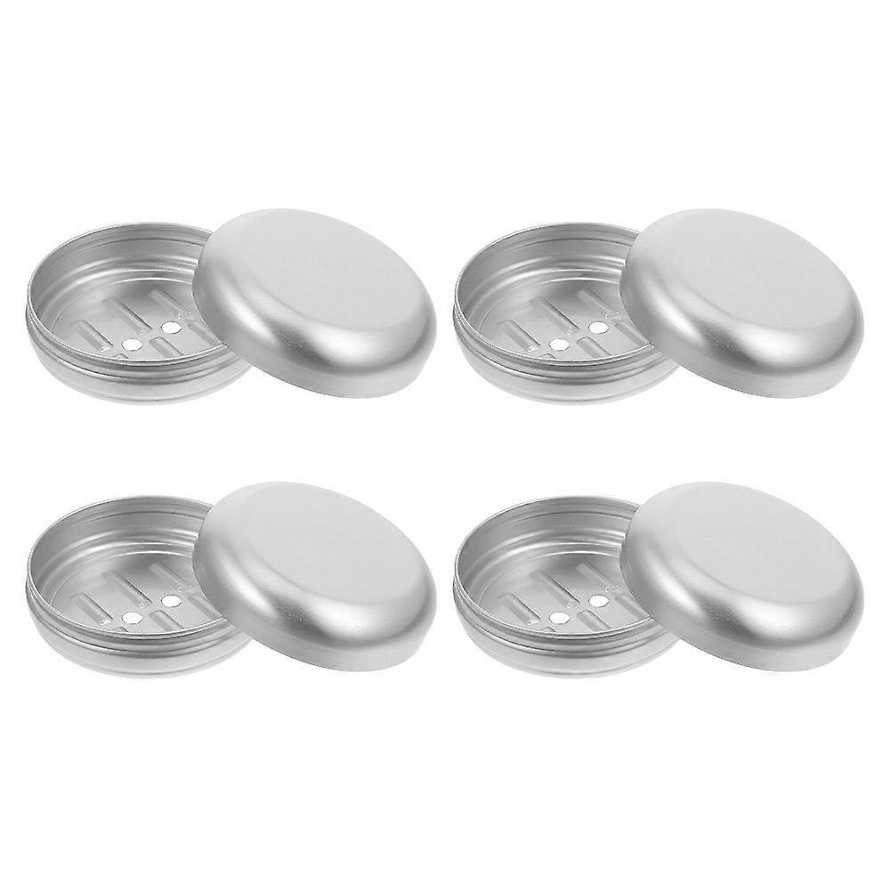 4pcs Round Aluminum Soap Box with Lid Stylish Travel Holder for Bath, Kitchen Use Efficient Drainage Design for Balm, Jewelry Storage
