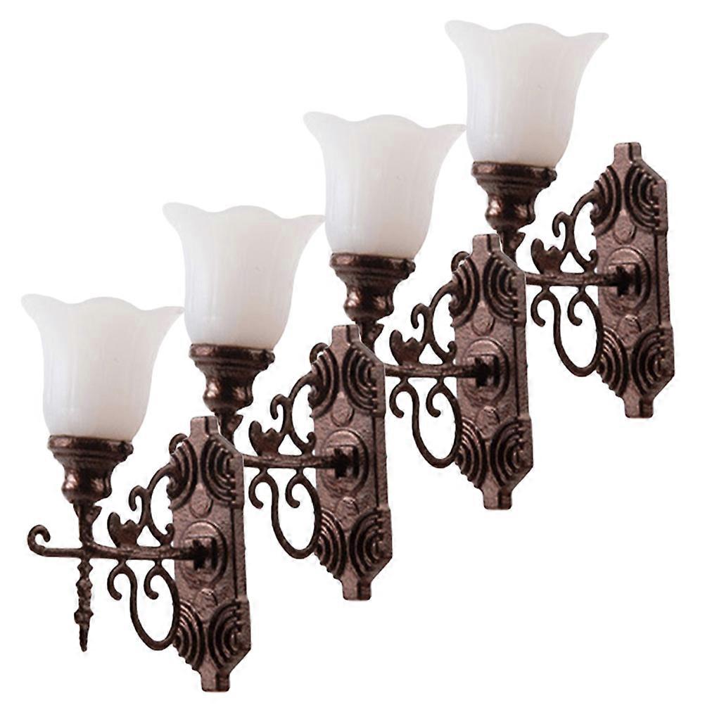 4pcs Miniature Wall Lamps for Decor Black ABS Material Creates Warm Scene 3.5 Inch