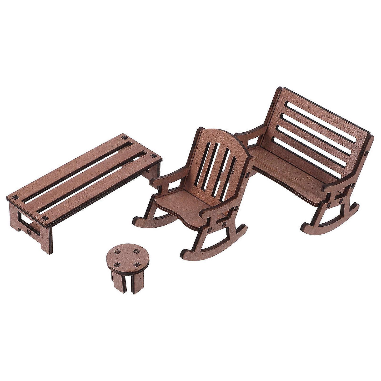 4pcs Miniature Wooden Dollhouse Furniture Set – Tiny Table, Bench & Chair for Fairy Garden, Realistic Design, Cozy Home Decor for DIY Creativity