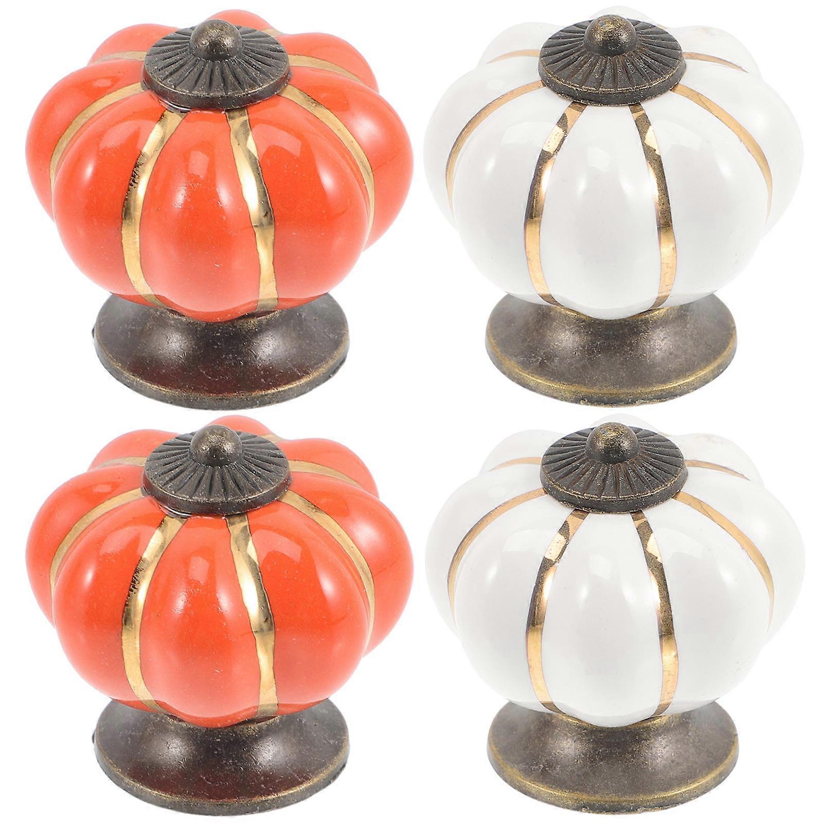 4pcs Modern Ceramic Cabinet Knobs, Pumpkin Design, Easy Install, Decorative Pull Handles for Kitchen, Wardrobe, and Dresser