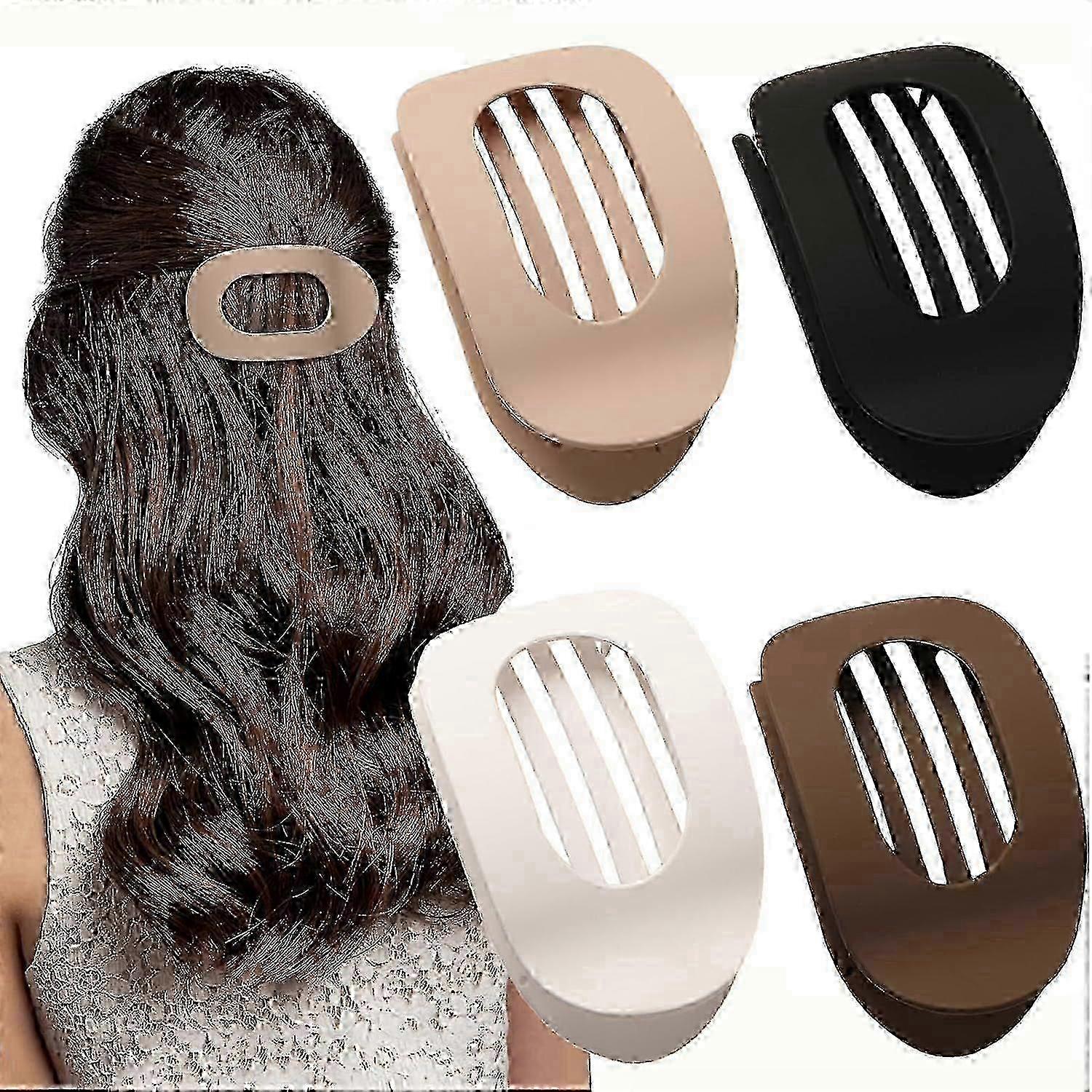 4 Pcs Flat Hair Clips, Round Lay Down Hair Claw Clips For Women Girls, French Strong Hold Hair Barrettes For Thick Thin Hair,comfortable Curved Flat C