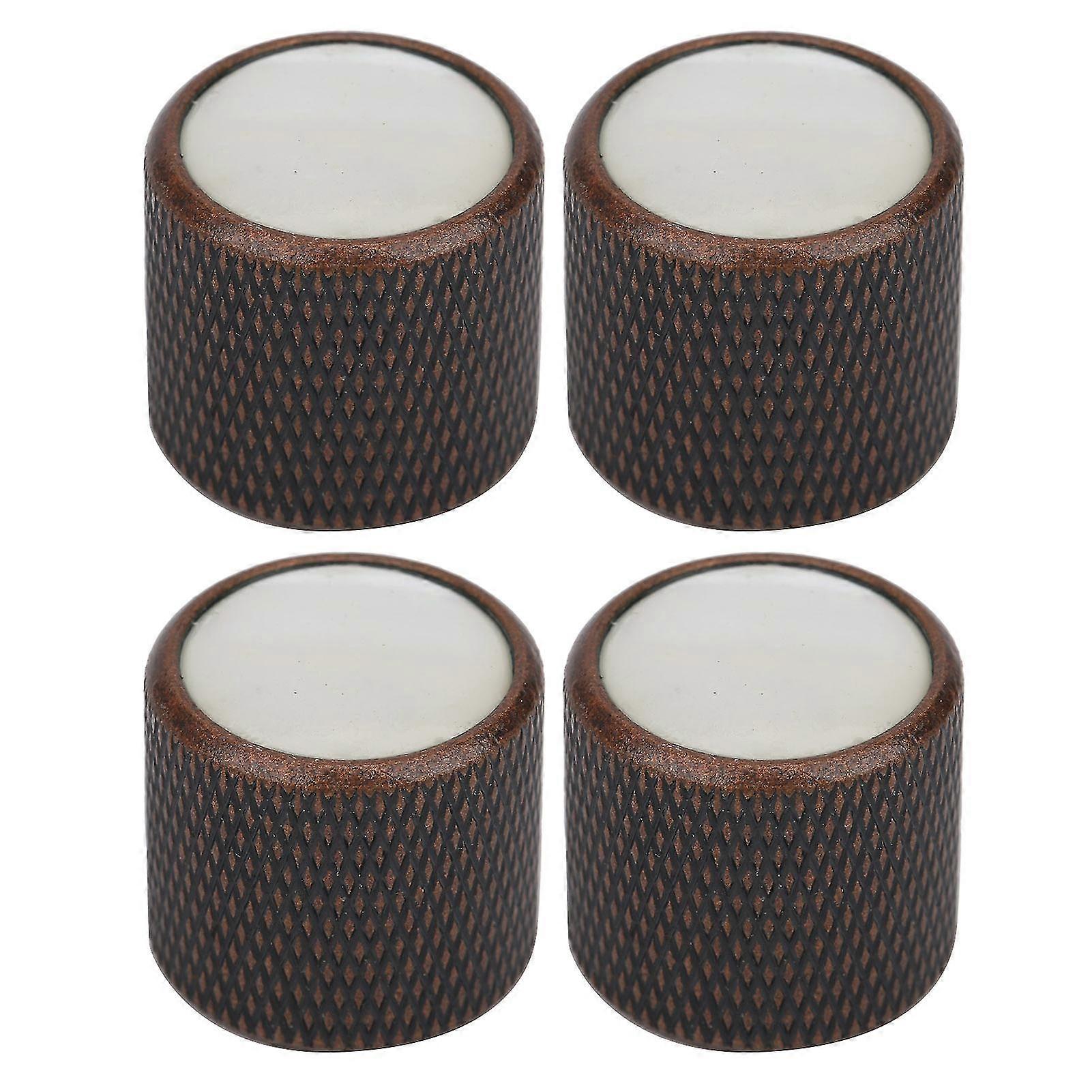 4 Pcs Electric Bass Knob Dome Metal High End Shell Inlaid Tone Volume Control Guitar Parts(White Shell Bronze)