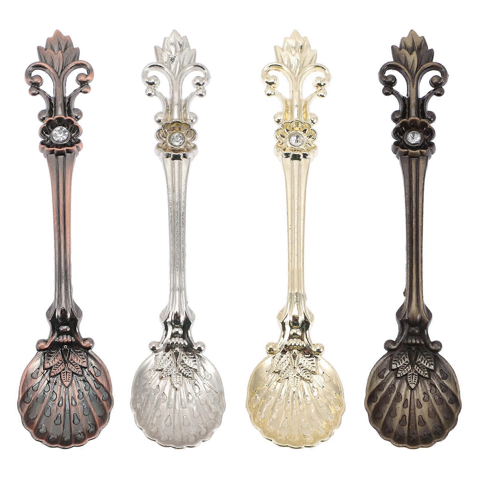 4pcs Vintage Alloy Coffee Spoons Retro Dessert & Mixing Spoons for Espresso, Honey Drinks, and Cakes Gold, Silver, Red
