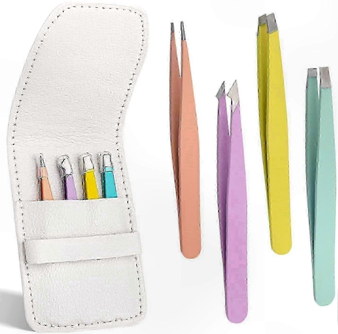 4 Pieces Tweezers, Professional Stainless Steel Eyebrow and Pointed Tweezers, Precision Tools for Hair Removal
