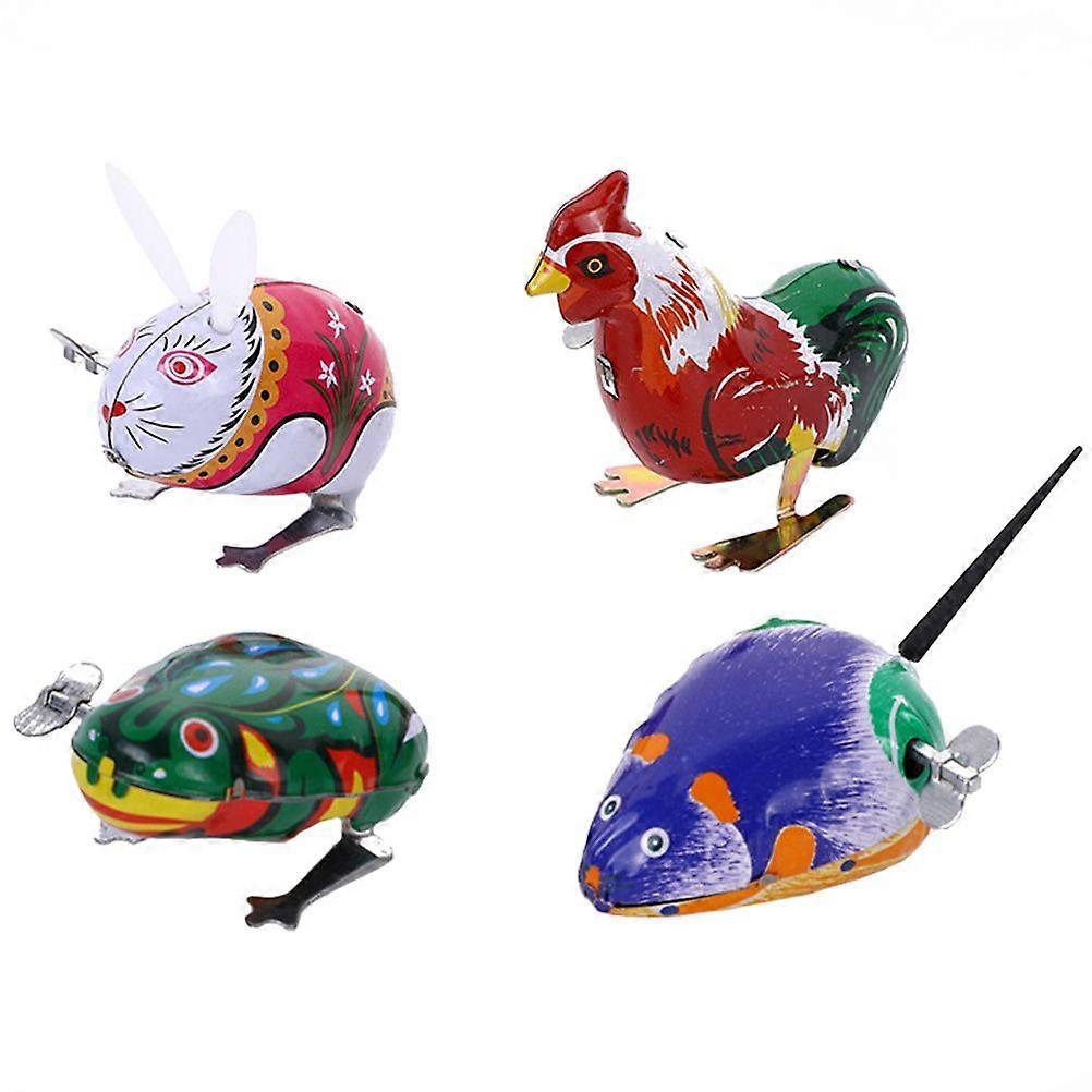 4Pcs Iron Animal Wind Up Toys Funny Jumping Playthings Kids Toys Mixed Color