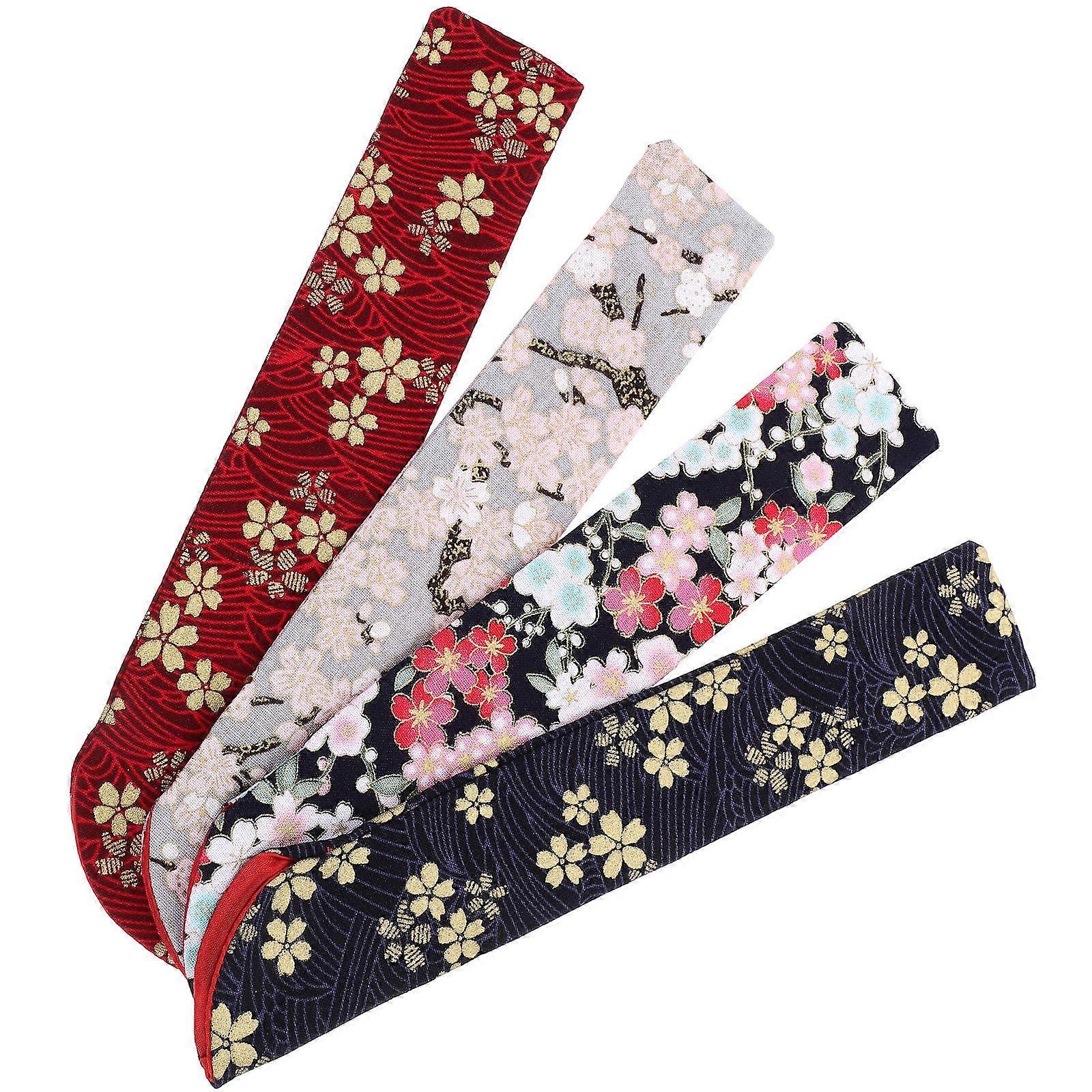 4pcs Japanese Handheld Fan Cases, Durable Silk Cloth, Lightweight Portable Pouch Organizer for Weddings, Birthdays, Everyday Use – Floral Design