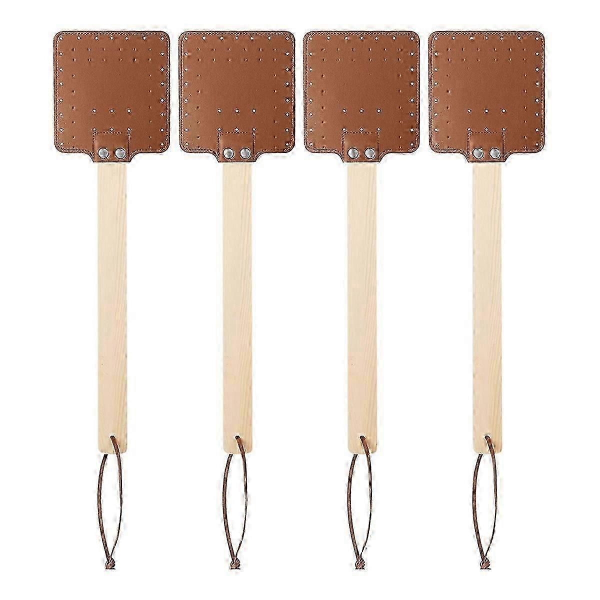 4 Pieces 17.3 Inch Fly Swatter Leather Fly Swatter Long Fly Swatter Manual Fly Swatter Wood Handle B