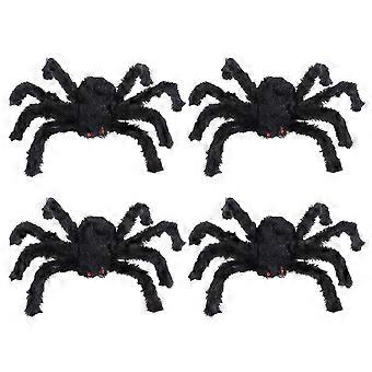4pcs Halloween Spider Prop Fake Plush Spider Scene Layout Decorative Prop (Black Spider Style, 30cm)