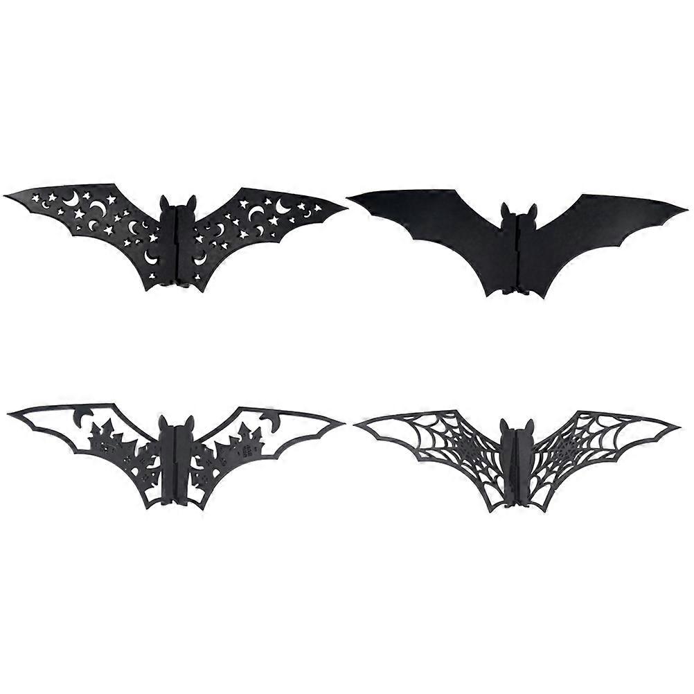 4Pcs Halloween Tabletop Bat Sign Decor Black Acrylic Stylish Ornaments Ideal For Halloween Parties And Home Decoration