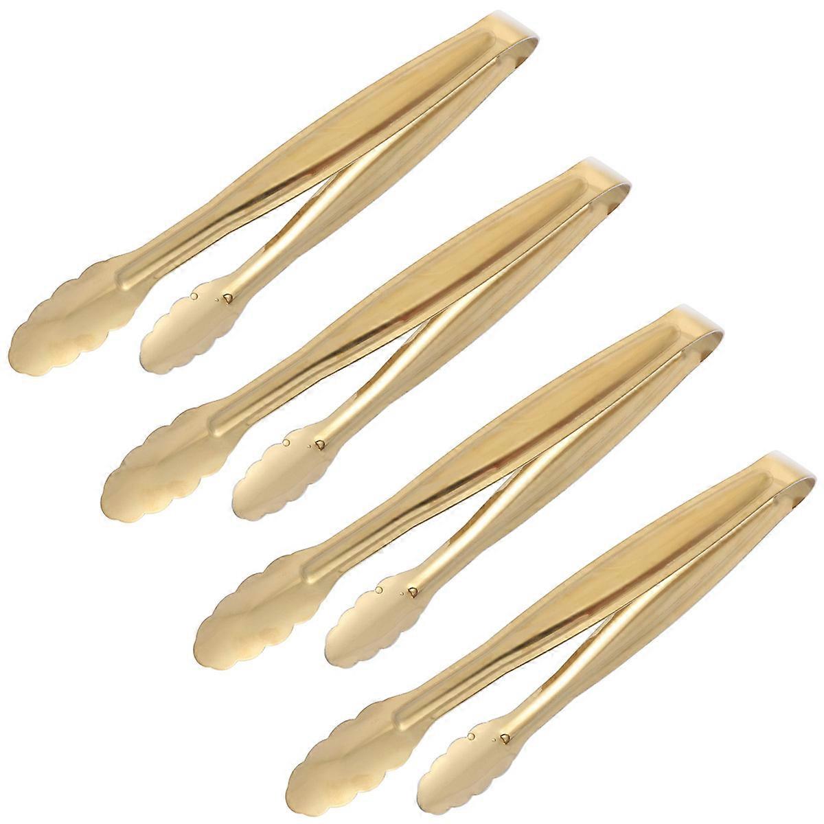 4 Pcs 15CM Stainless Steel Mini Food Serving Tongs Practical Ice Cube Tongs Bread Clip Home Bar Supplies (YH53-B, Golden)